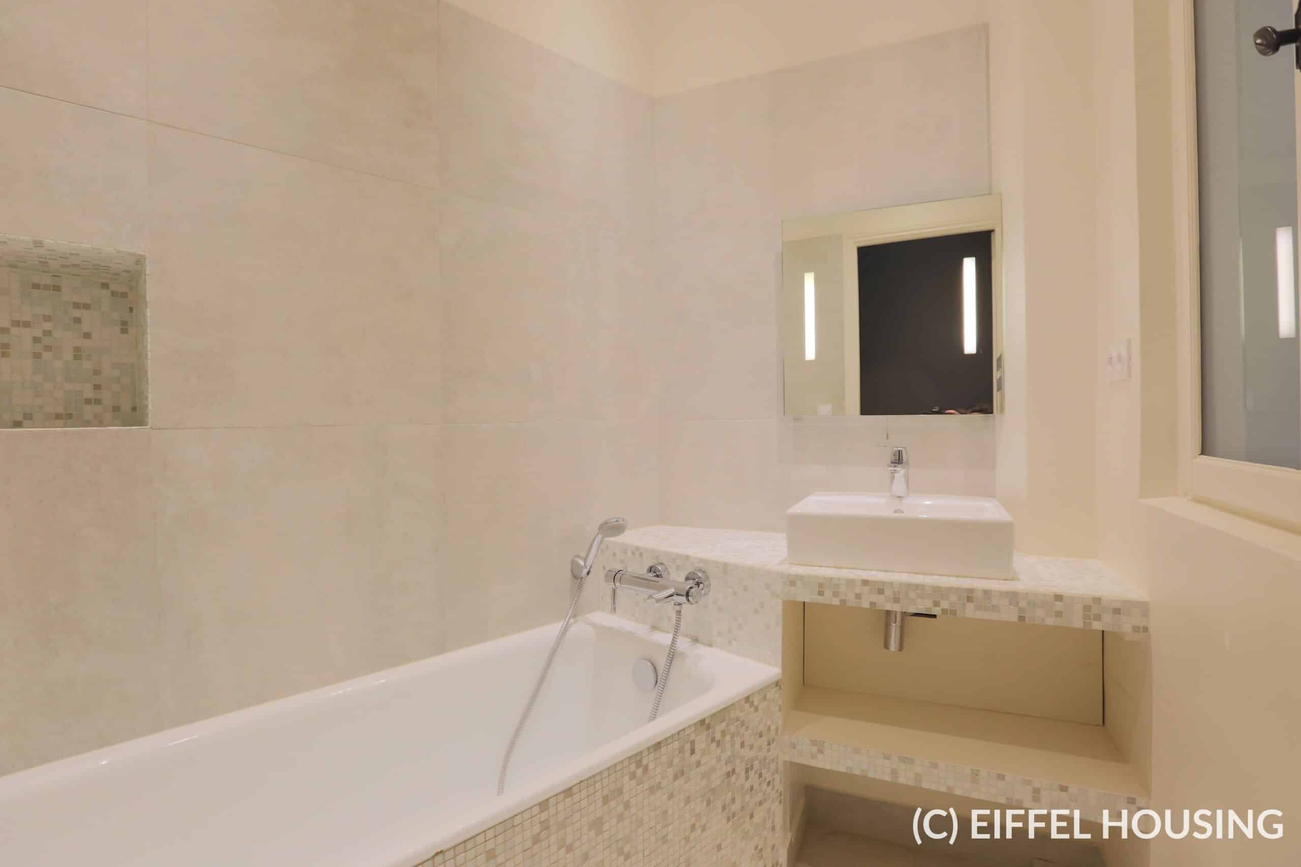 Ce duplex a bénéficié d’une rénovation complète haut de gamme. Ameublement de goût et luxueux.
