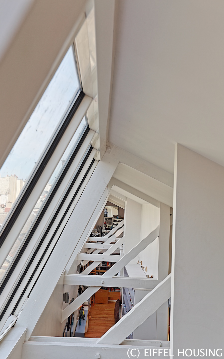 Il se compose d’un double séjour donnant sur une cuisine ouverte entièrement aménagée et équipée, de 2 chambres donnant sur cour, d’une chambre avec avec salle d’eau, et d’une salle de bains avec WC.