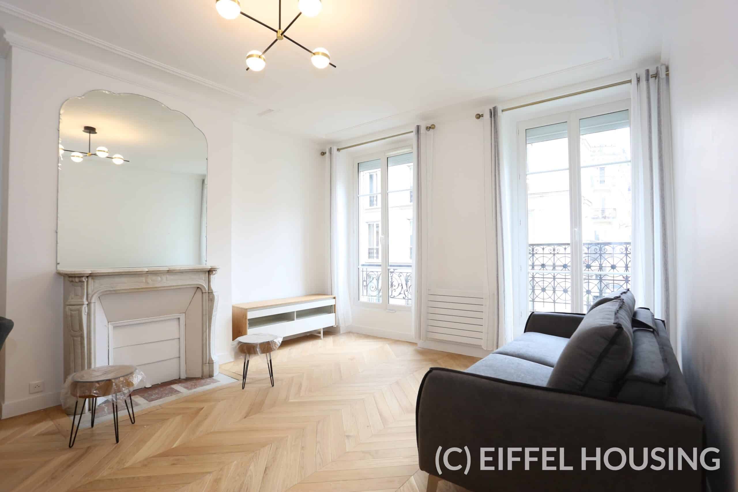 L’appartement présente tout le charme de l’Haussmanien : parquet en pointe de Hongrie en parfait état, moulures, cheminée, belle hauteurs sous plafond.