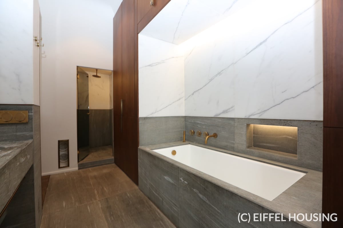 - une suite parentale avec sa salle d’eau (bain et douche), un grand dressing et des WC séparés.