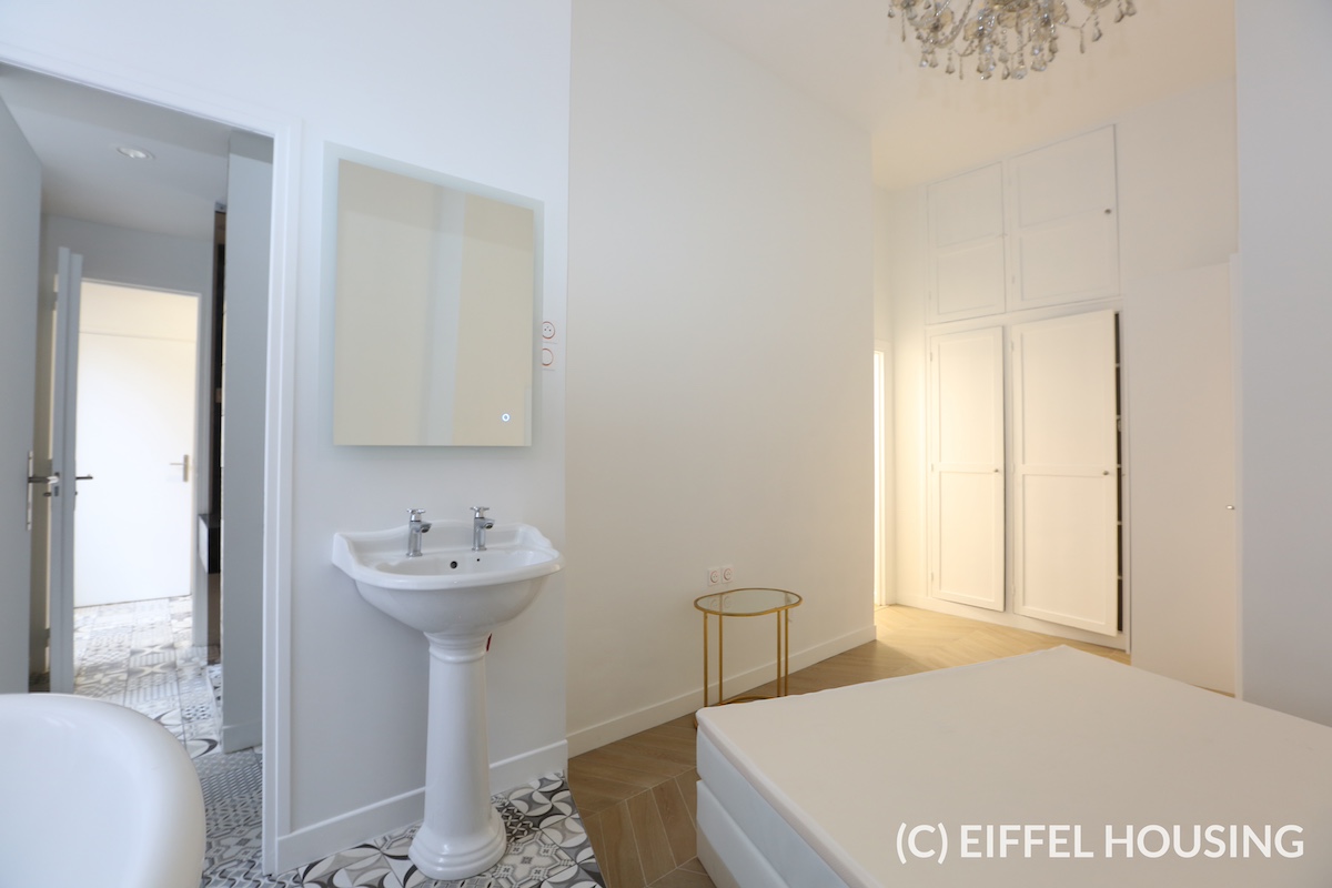 Appartement refait à neuf et lumineux. Tout le charme de l’ancien : parquet en pointe de Hongrie, moulures, cheminée. Superbe hauteur sous plafond.