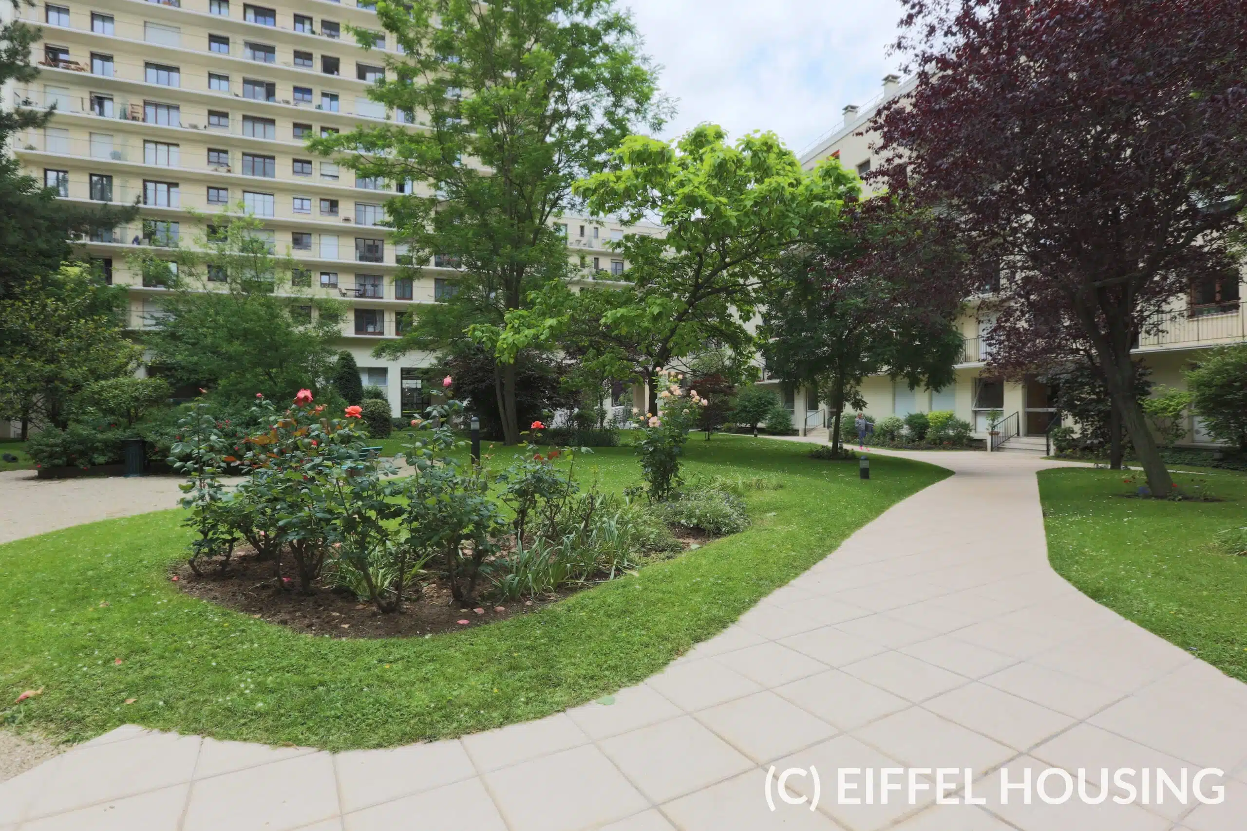 L’appartement se compose d’une entrée, d’un salon avec un petit balcon (exposition ouest), d’une cuisine aménagée et équipée (exposition est), d’une belle chambre sur jardin avec son balcon (exposition est), d’une salle de bains et d’un WC. Placards.