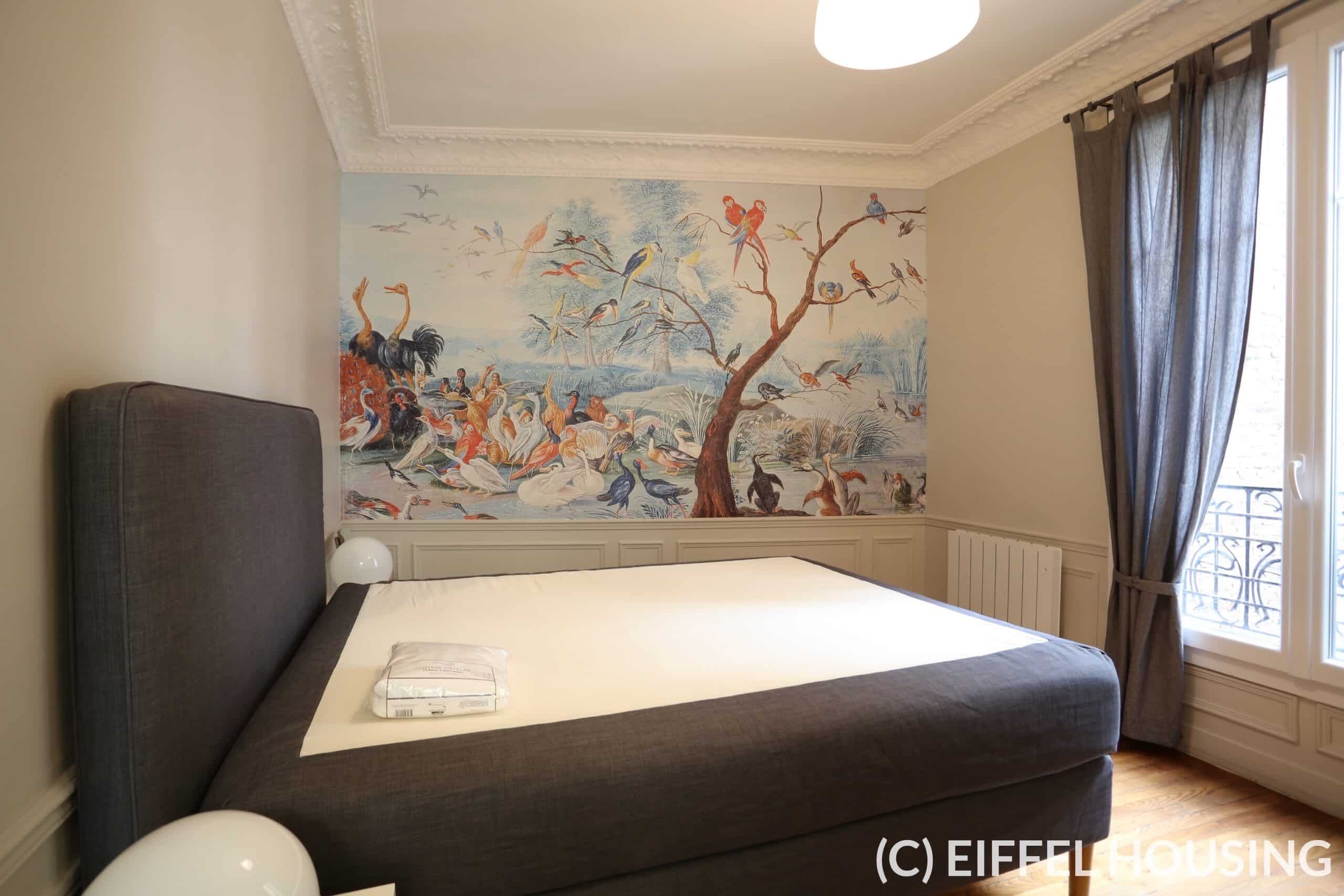 L’appartement est au 4ème étage avec ascenseur, dans un immeuble de standing très bien entretenu. Il se compose de deux chambres, d’un double salon / salle à manger (le salon peut être transformée en troisième chambre), d’une cuisine américaine tout équipée, d’une salle d’eau, d’un WC séparé. Tout le mobilier est neuf : décoration et ameublement contemporains et élégants.