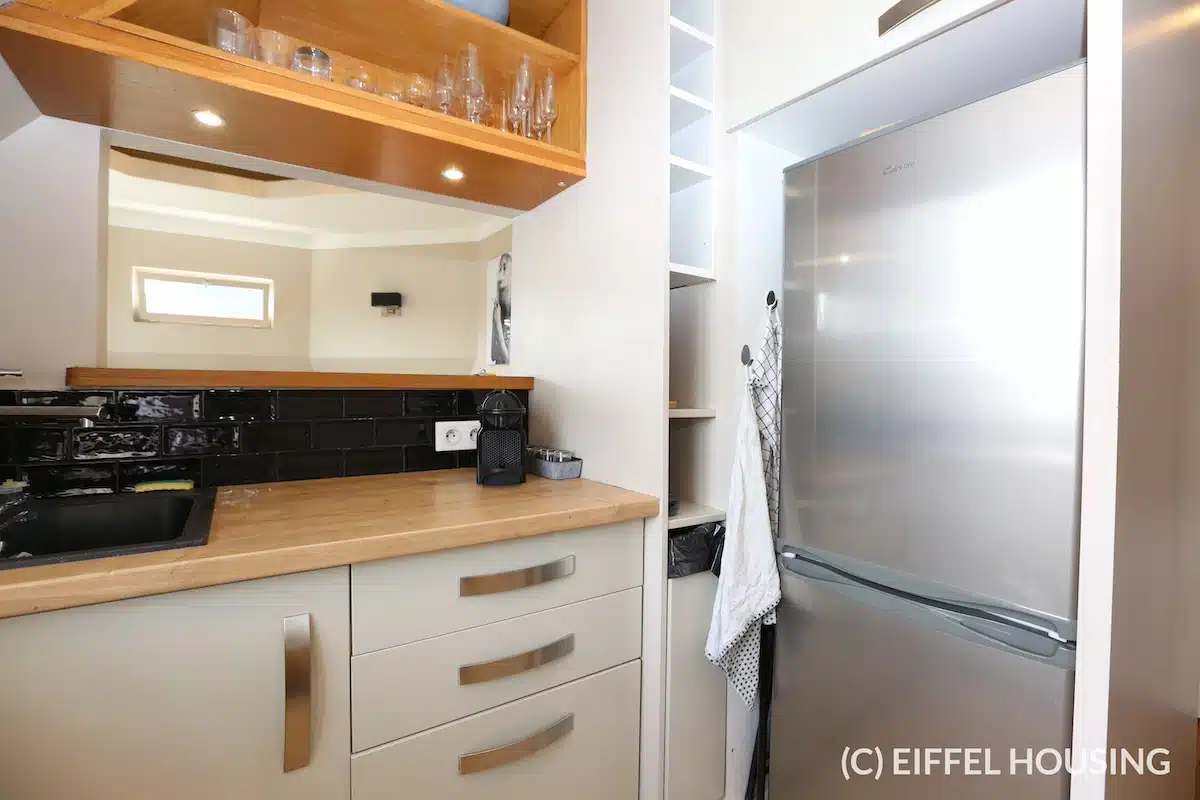 Superficie de 45m2 au sol et de 38m2 Carrez. L’appartement se compose d’une entrée, d’un salon en rotonde avec une superbe hauteur sous plafond, d’une cuisine séparée équipée et aménagée, d’une chambre avec rangements, d’une salle de douche avec wc (sanibroyeur).