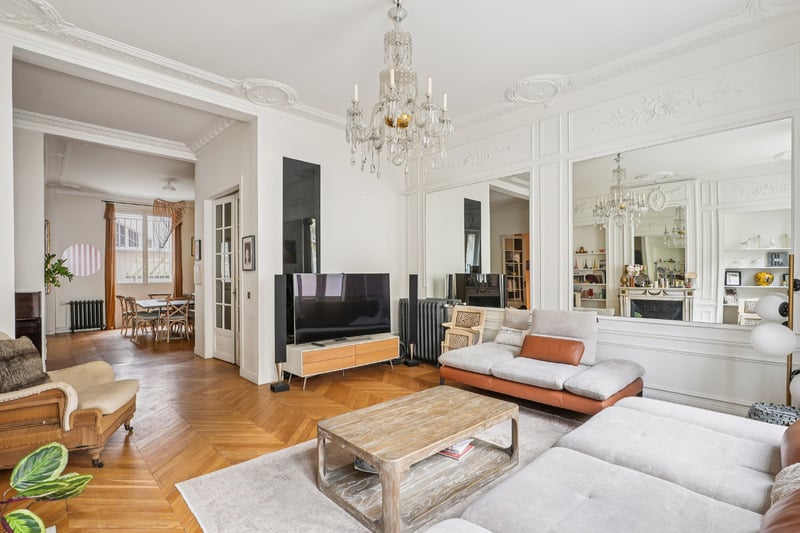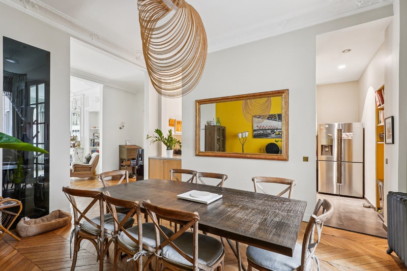 En rez-de-chaussée dans un immeuble haussmannien de standing très bien entretenu. D’une surface de 196m², l’appartement se compose :