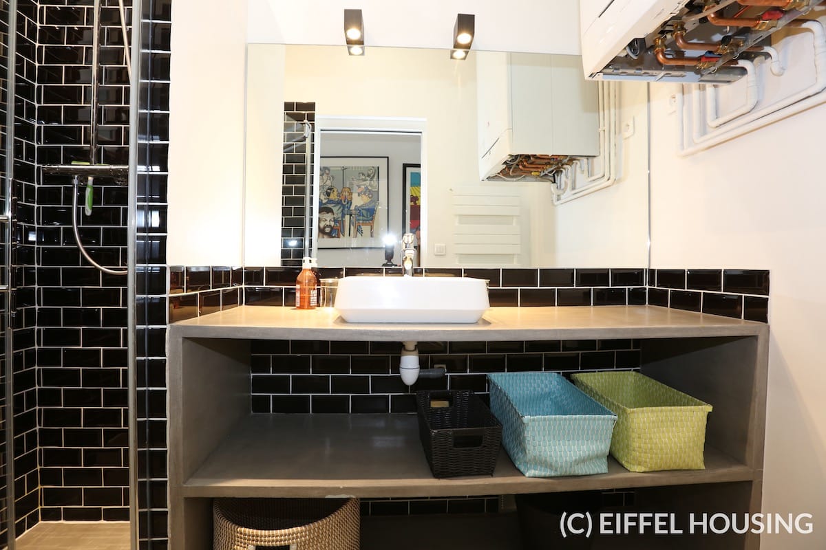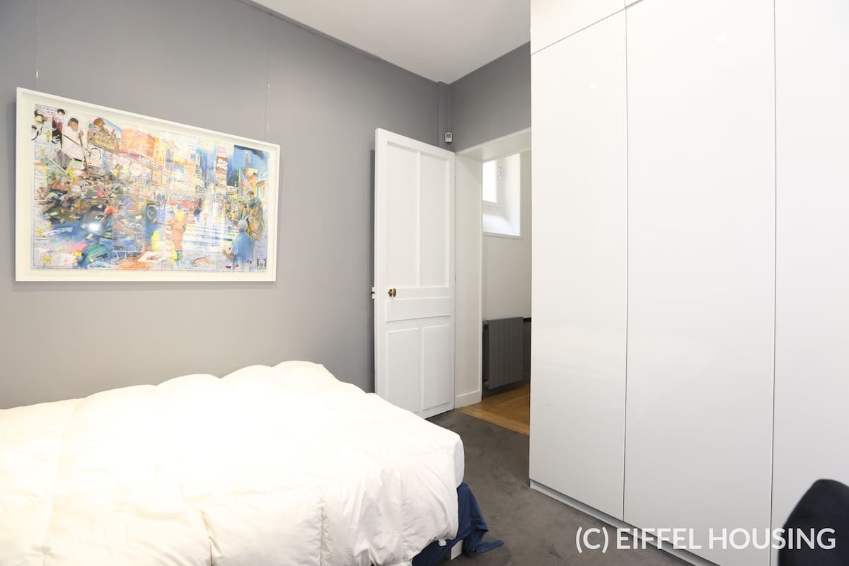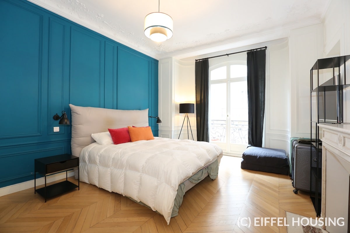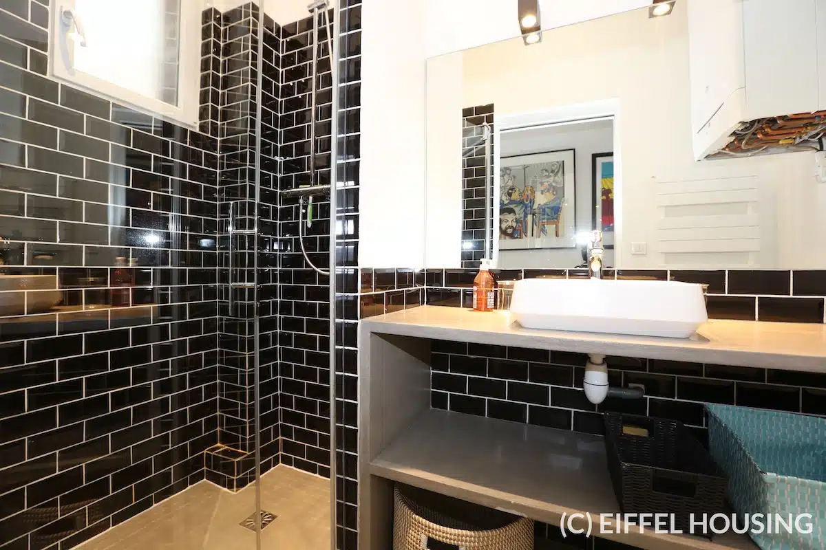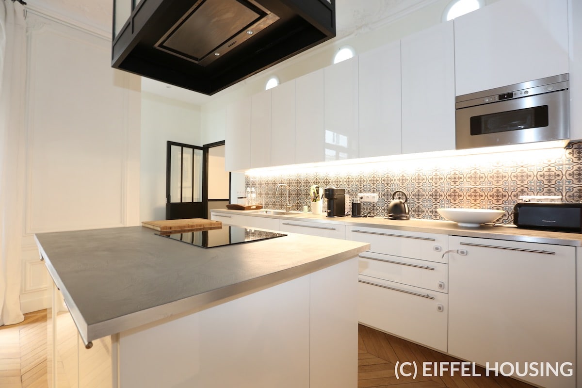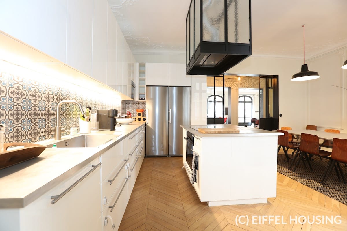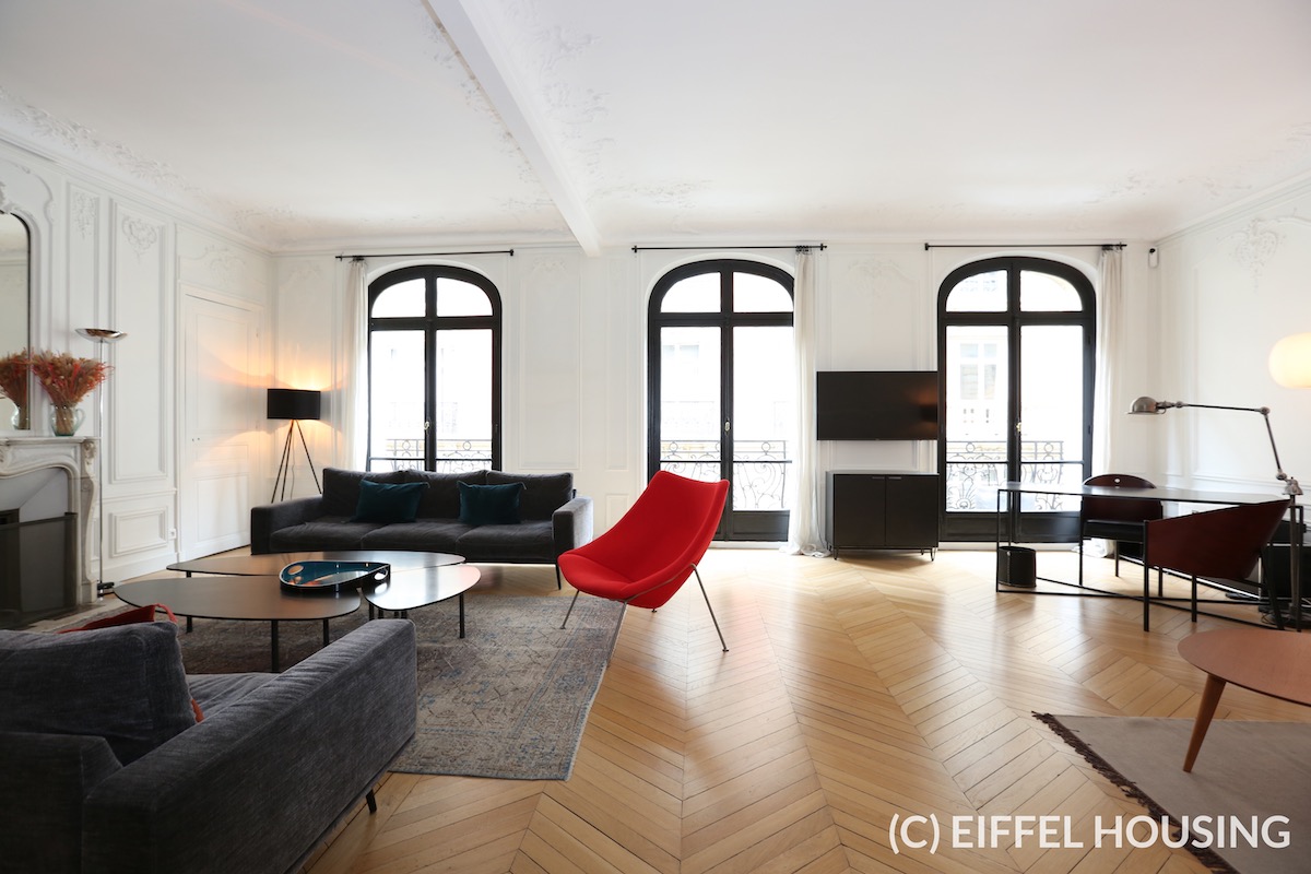 Nombreux rangements. Ameublement contemporain et haut de gamme. Tout le charme de l’ancien : parquet en pointe de Hongrie, moulures, cheminée. Belle hauteur sous plafond.