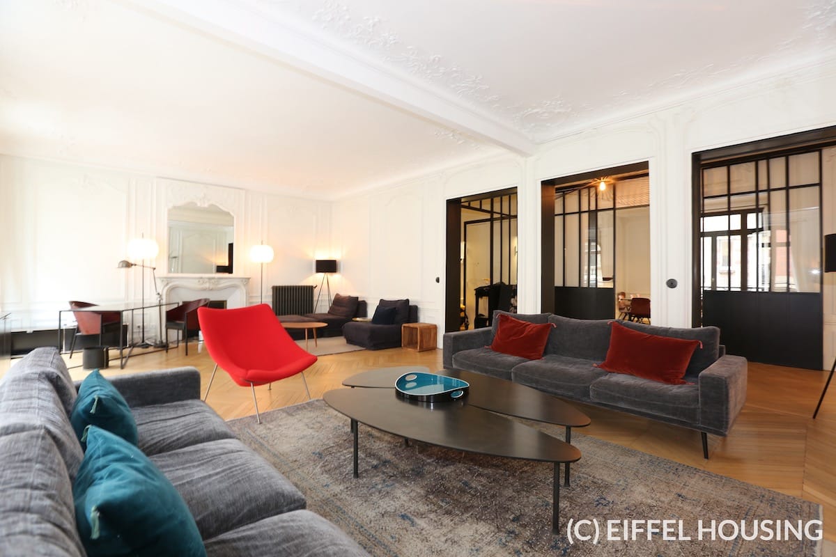 Ameublement haut-de-gamme et élégant pour cet appartement de 205m2 qui se compose :