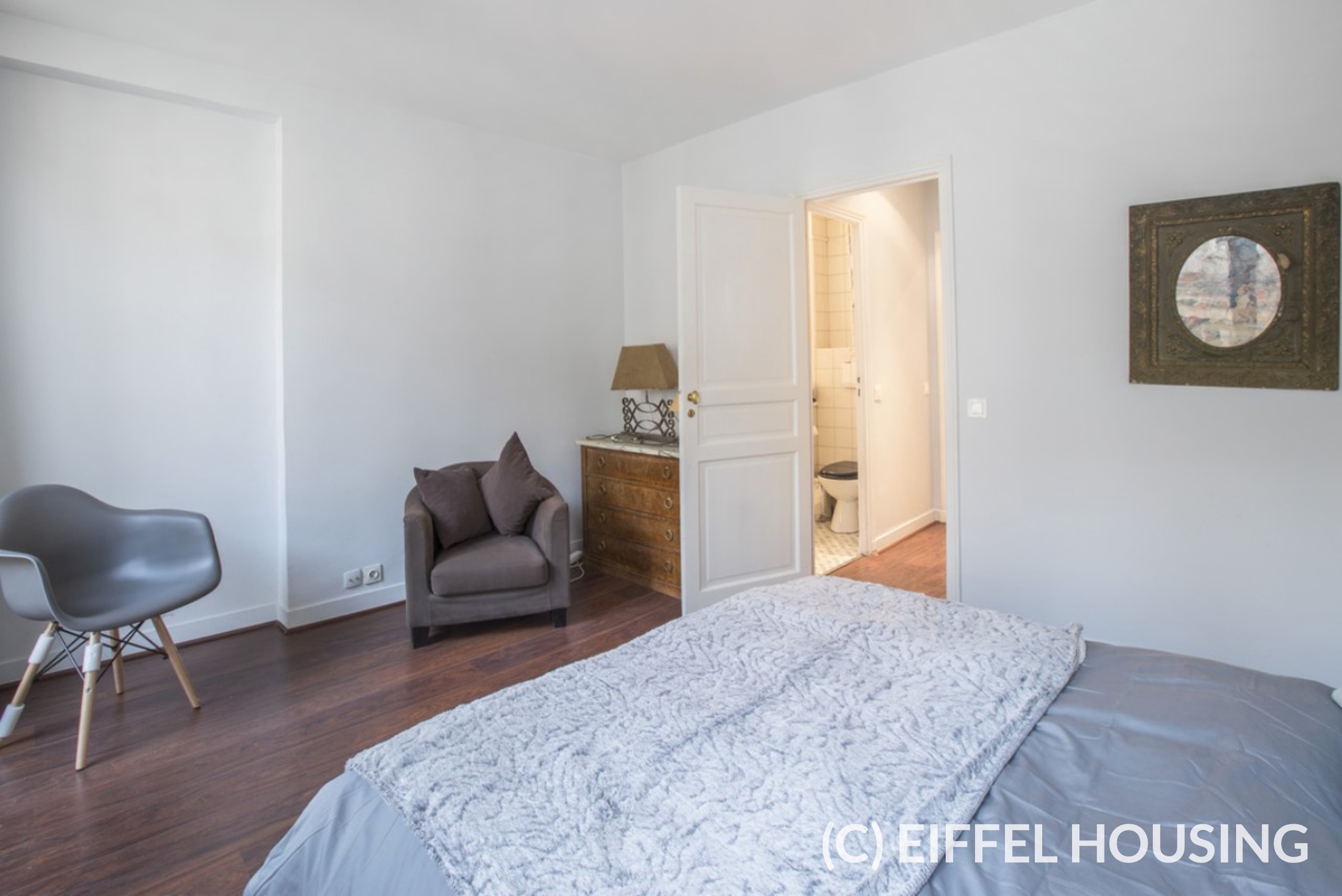 Mobilier sobre et élégant. Lumineux et calme. Parquet et cheminée. Repeint récemment.
