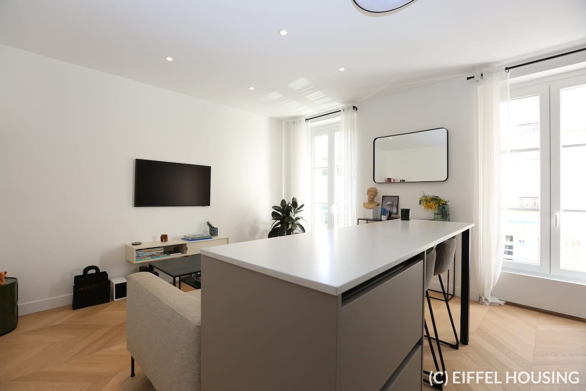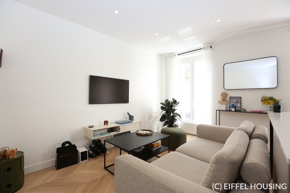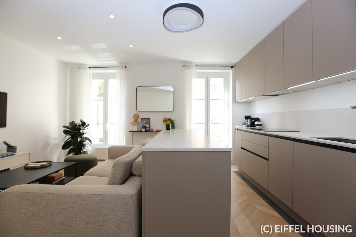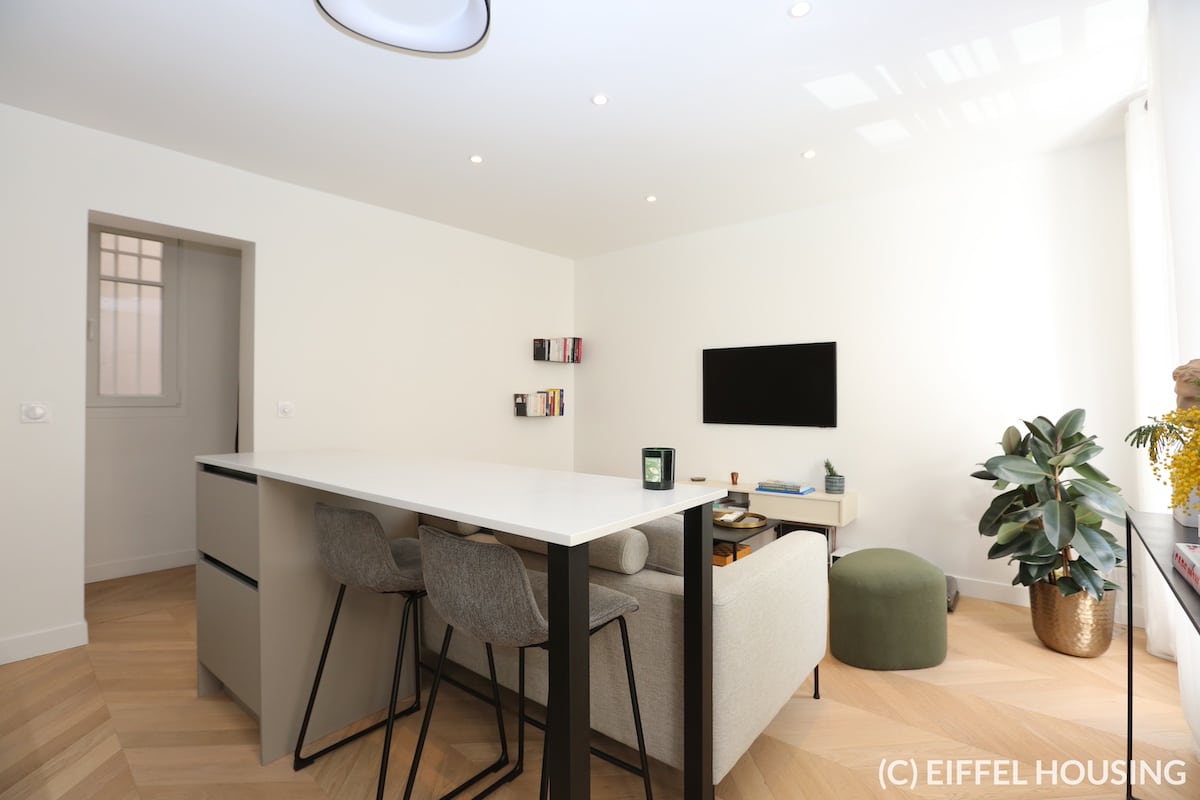 L’appartement a bénéficié d’une rénovation complète en 2025. Appartement en parfait état. Ameublement contemporain et soigné. Matériaux de qualité et électroménager haut de gamme. Parquet.