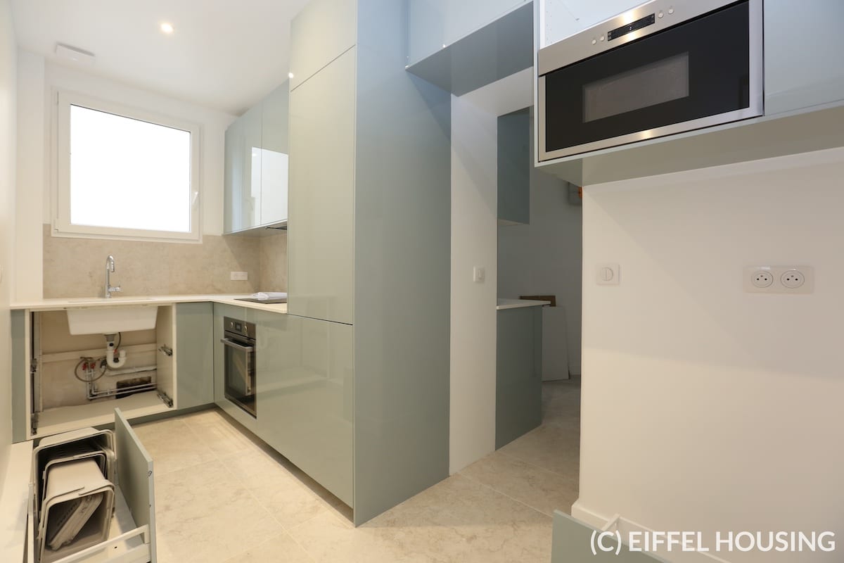 L’appartement a bénéficié d’une rénovation complète. Cuisine intégralement équipée. Superbe parquet, moulures, cheminées. Belle hauteur sous plafond. Double vitrage.