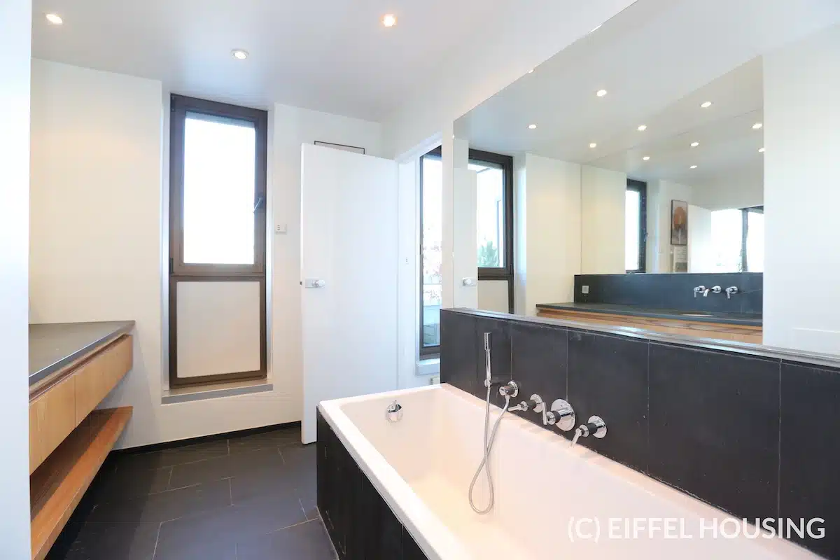 L’appartement bénéficie d’une terrasse en double exposition de 30m2 avec vue dégagée à 180 degrés et vue sur le Sacré Coeur!