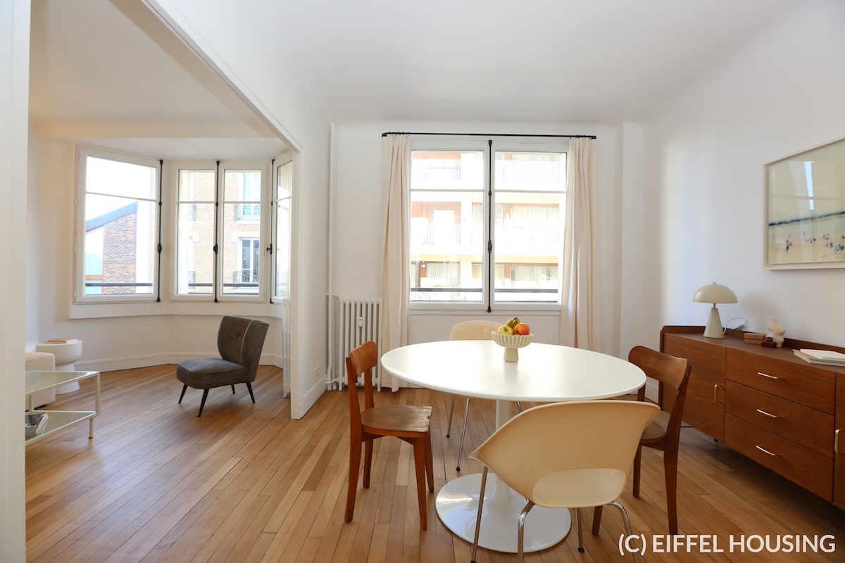 L’appartement a bénéficié d’une rénovation complète. Ameublement neuf, contemporain et élégant. Appartement très lumineux.