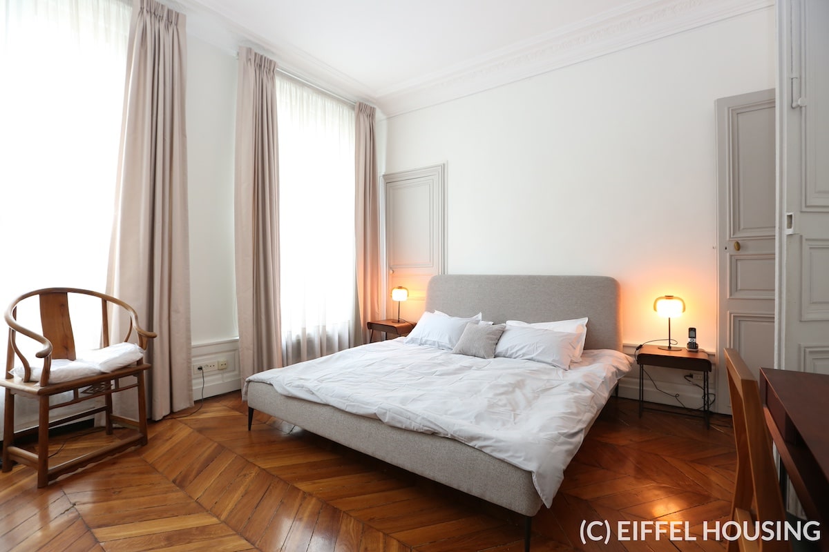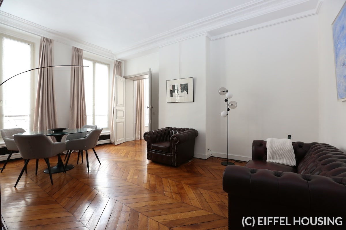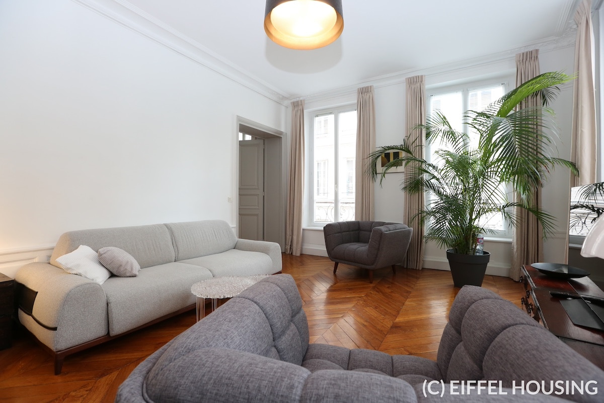 Très bel appartement meublé situé rue de l’Université, à l’angle avec la rue du Bac dans le 7ème arrondissement de Paris. Les stations de métro Rue du Bac (ligne 12), Solférino (ligne 12) et Musée d’Orsay (RER C) sont toutes proches.