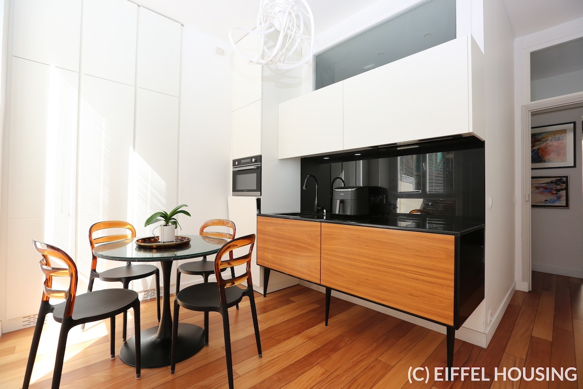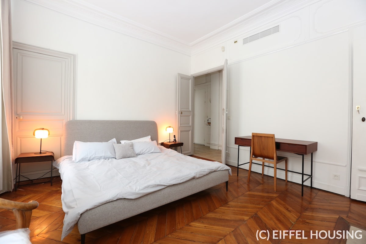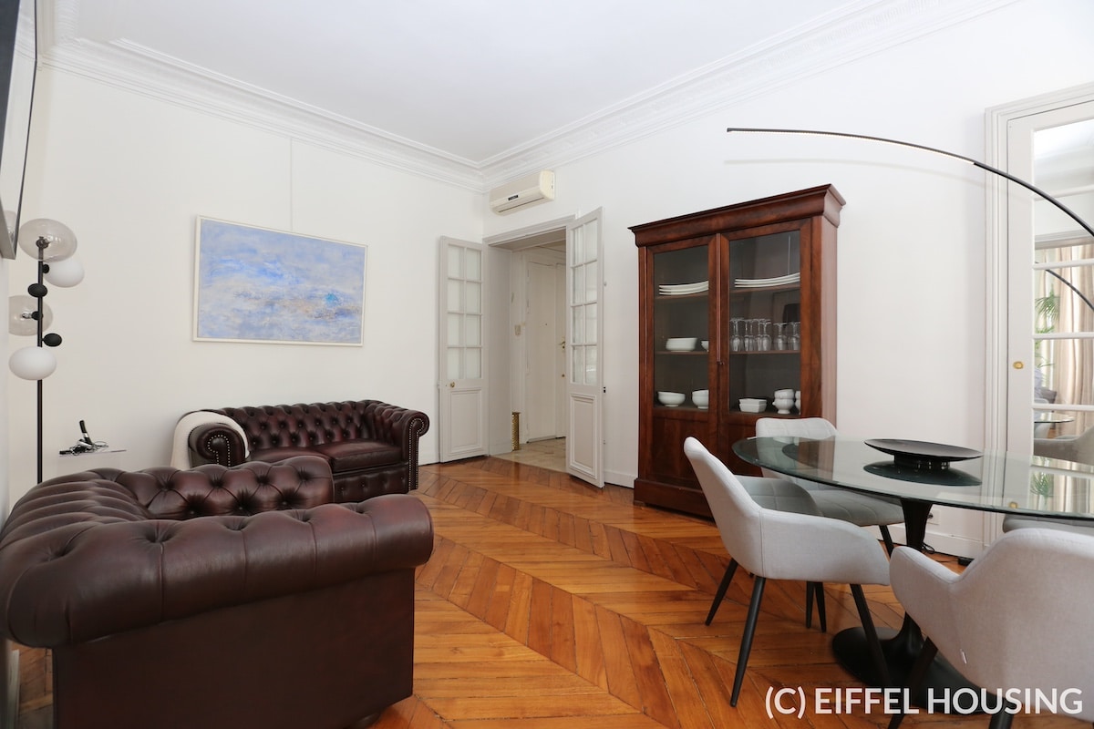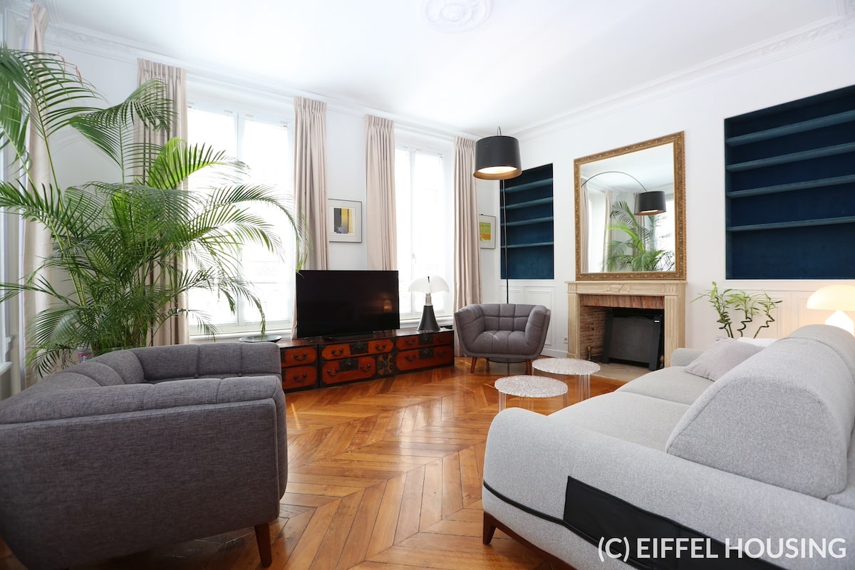 Très bel appartement meublé situé rue de l’Université, à l’angle avec la rue du Bac dans le 7ème arrondissement de Paris. Les stations de métro Rue du Bac (ligne 12), Solférino (ligne 12) et Musée d’Orsay (RER C) sont toutes proches.