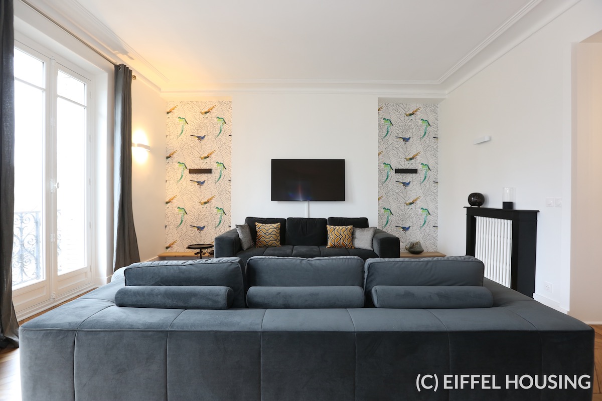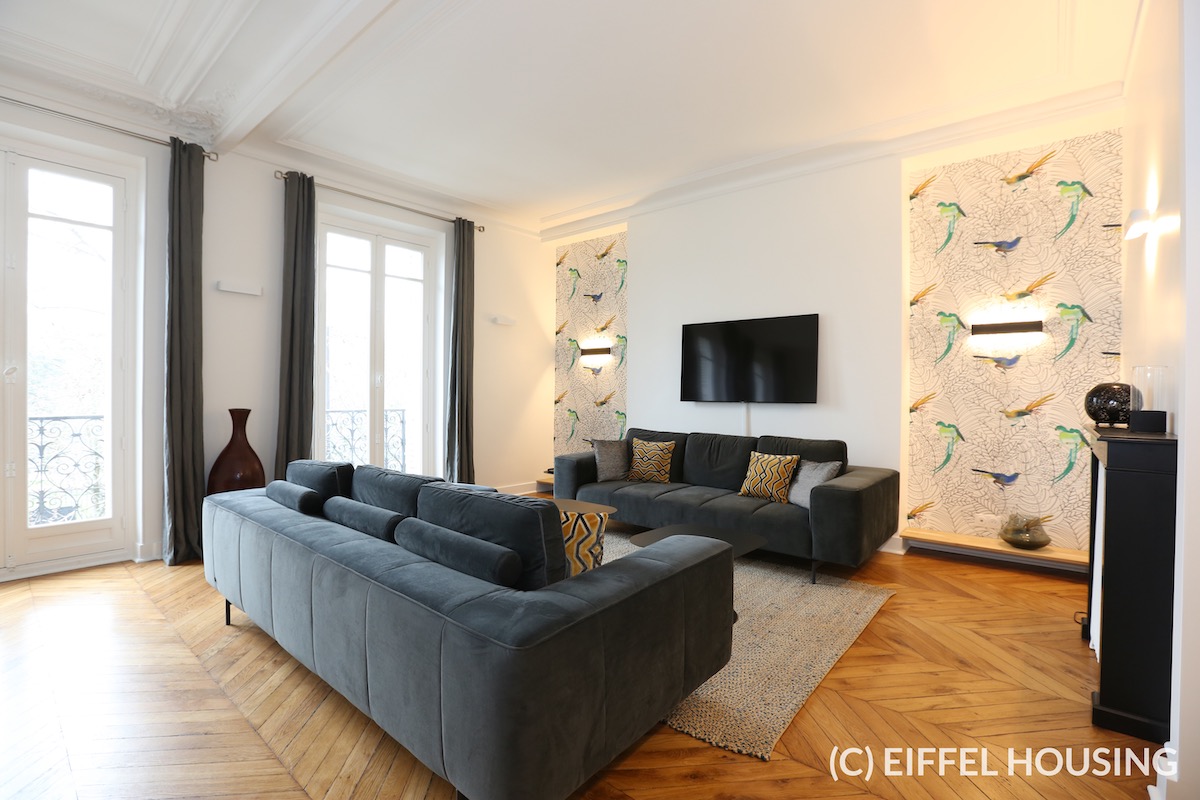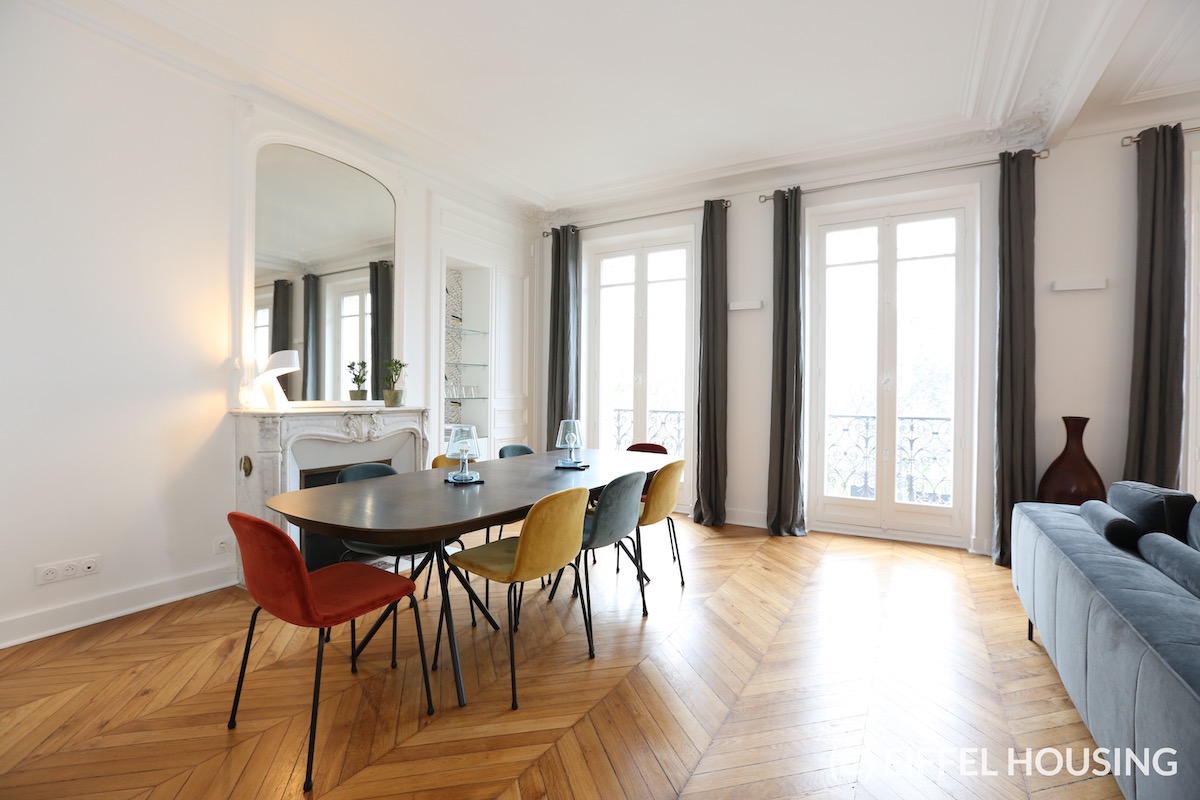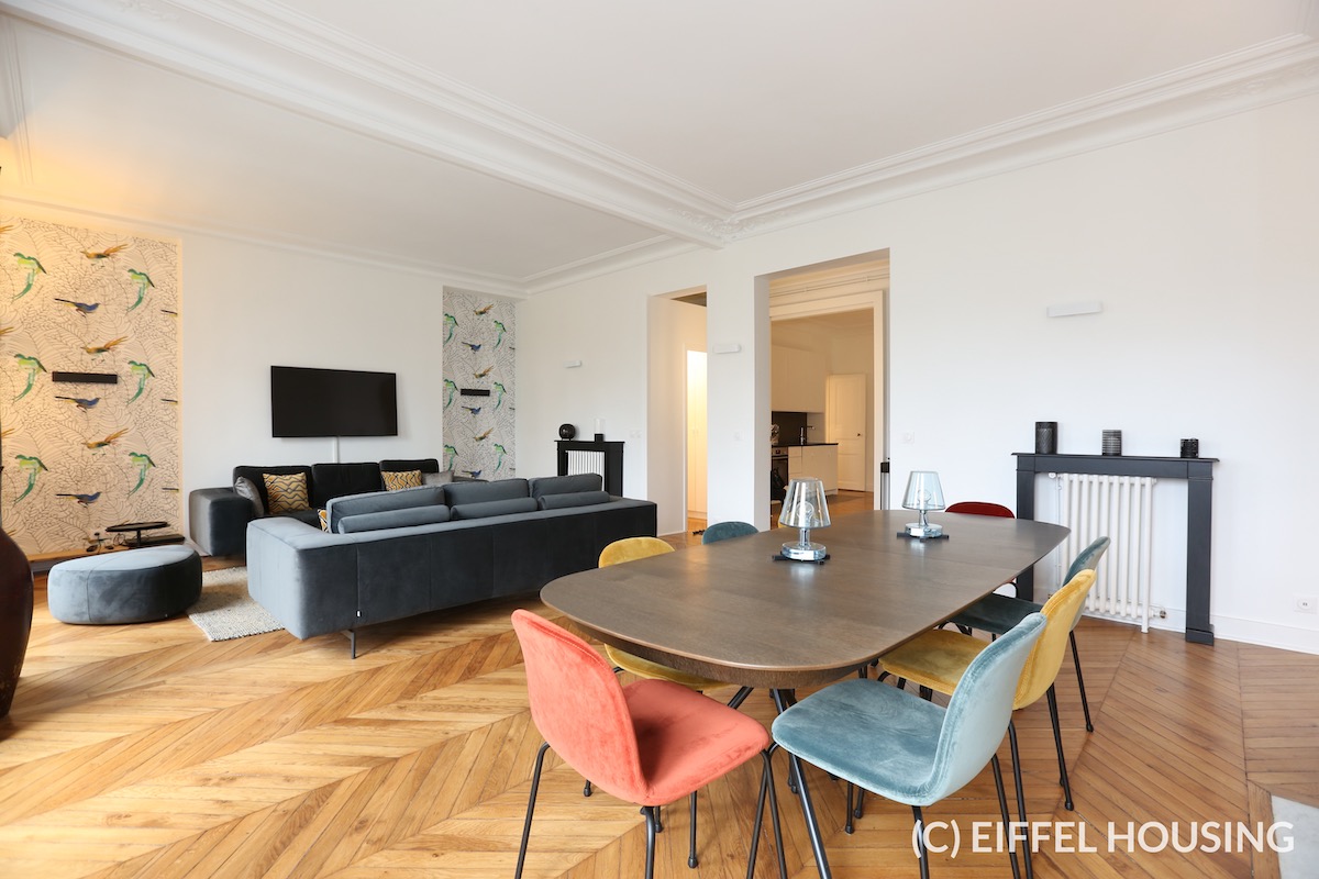 Ameublement haut de gamme, moulures et belle hauteur sous plafond.