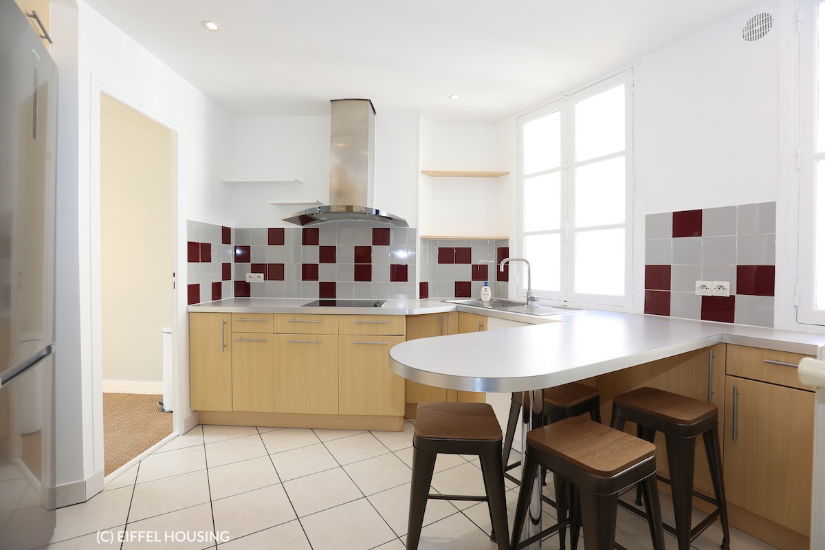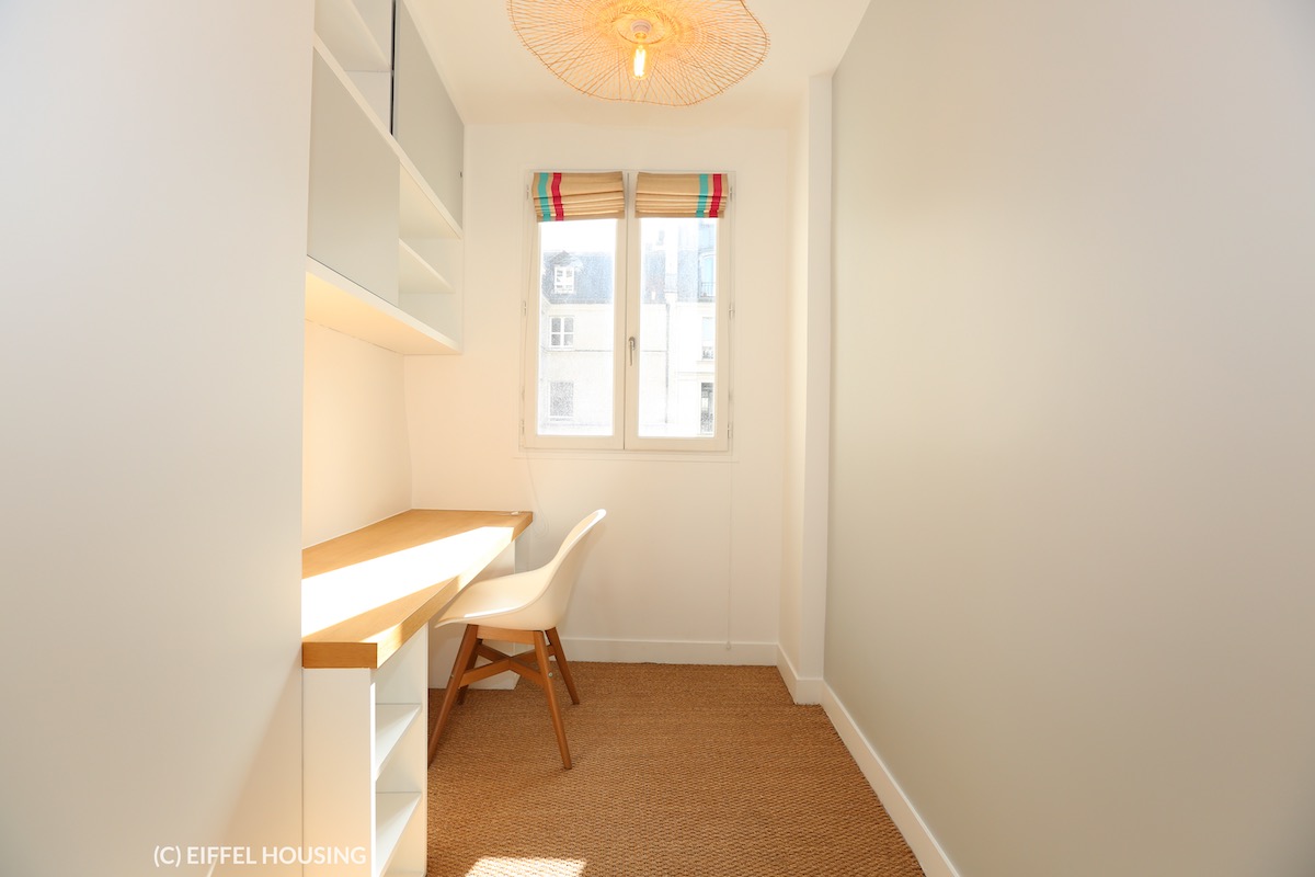 Au 3ème étage avec ascenseur. D’une surface de 95m2, l’appartement se compose d’une entrée, d’un grand séjour / salle à manger, d’une cuisine équipée séparée, de deux chambres spacieuses (une sur rue, une sur cour), d’un bureau aménagé, d’une salle de bain (avec baignoire et douche) et d’un WC séparé.