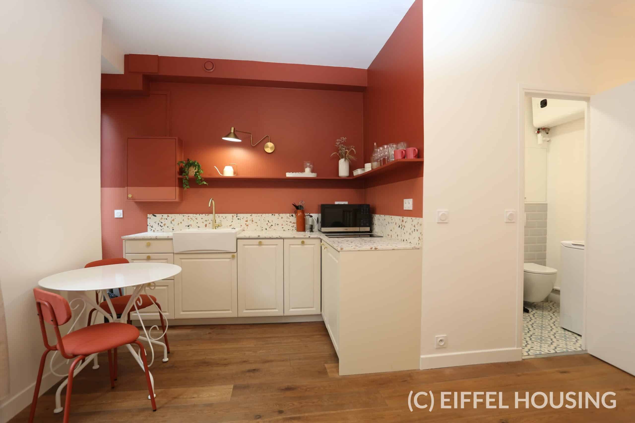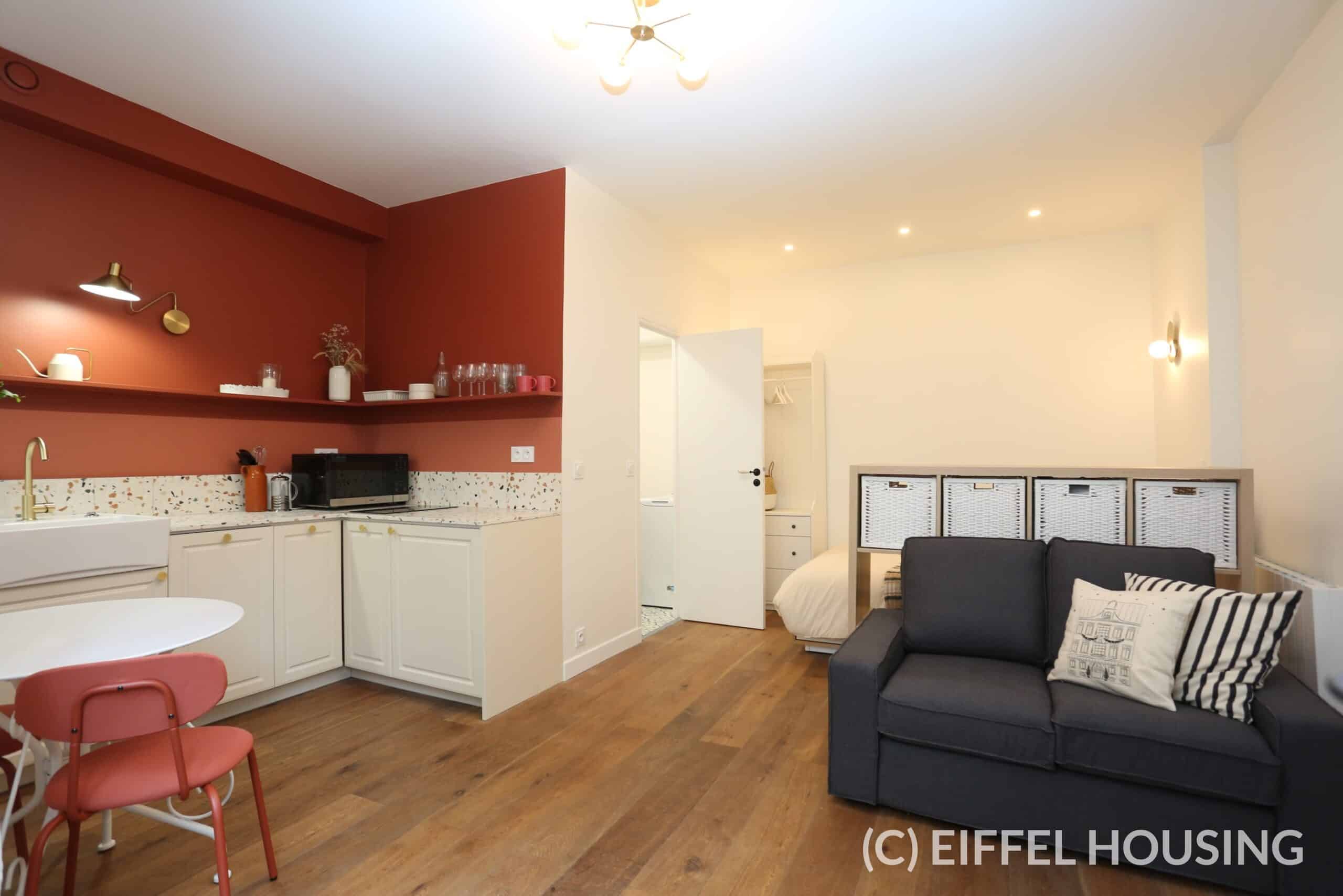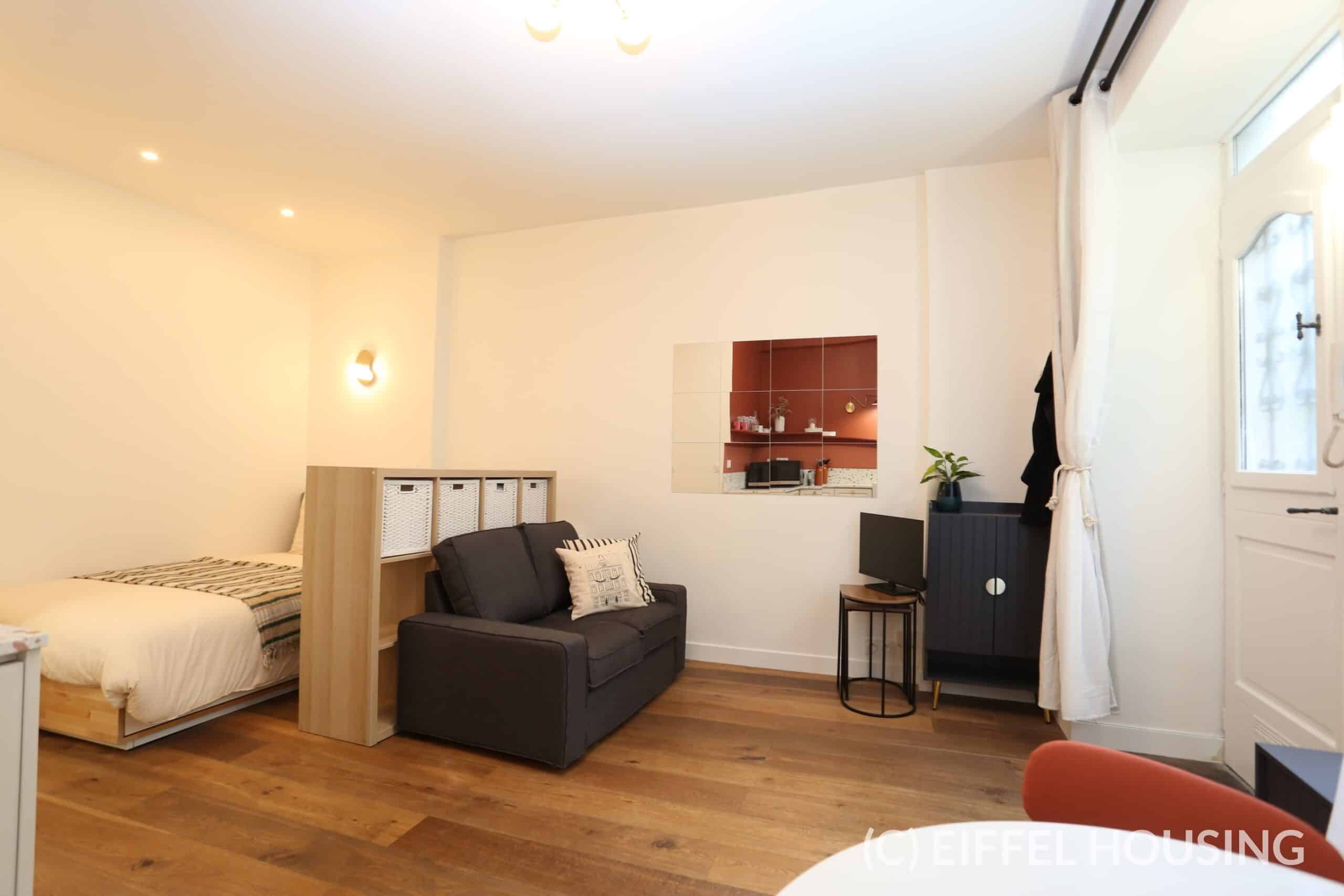 Magnifique studio avec terrasse privative, refait à neuf et loué meublé, en rez-de-chaussée (intégralement sur cour). Situé Rue Maurice Utrillo dans le 18ème arrondissement de Paris, à proximité immédiate de la Basilique su Sacré-Coeur de Montmartre, de nombreux commerces et restaurants. Proche du métro Abbesses (ligne 12).