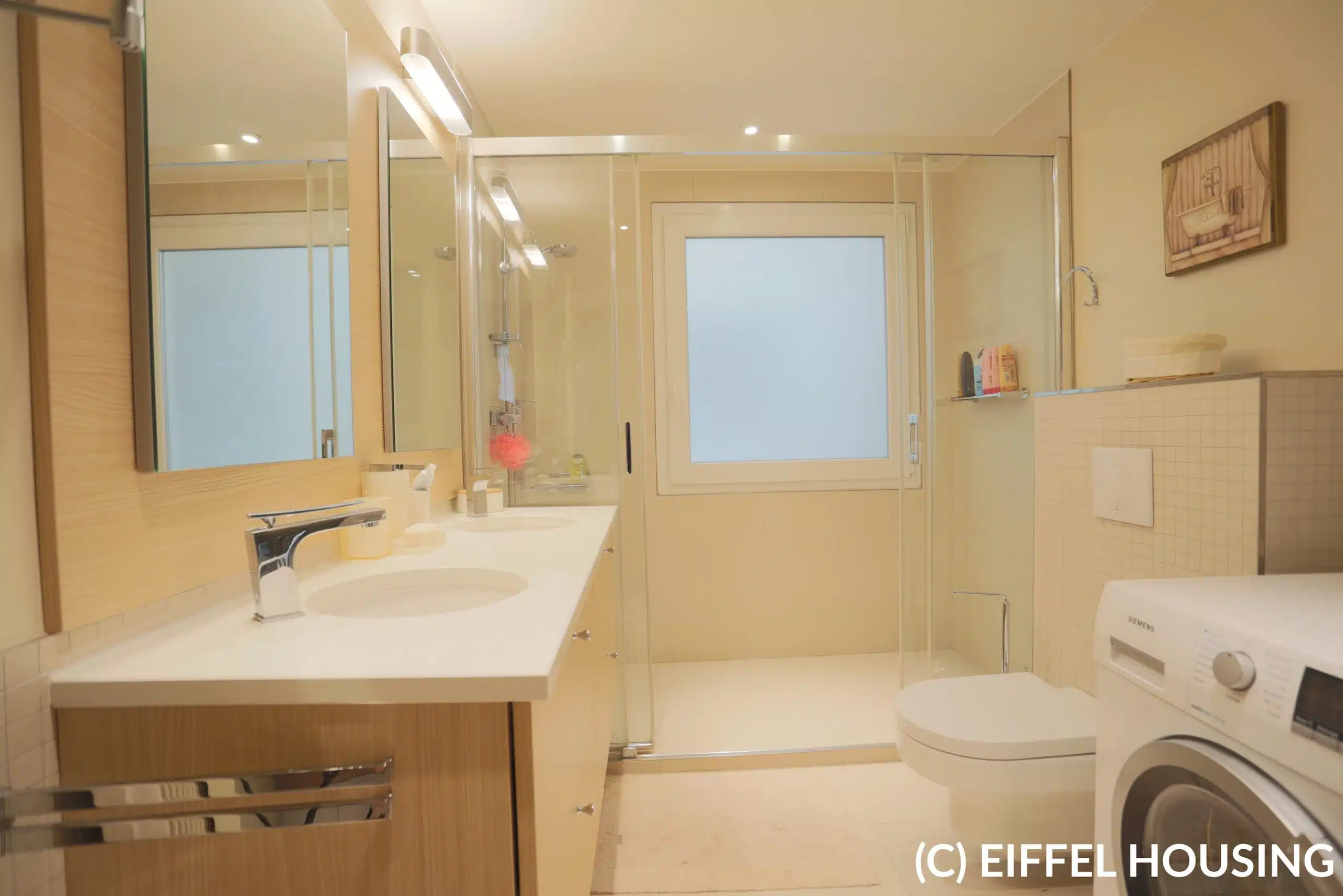 Triangle d’Or-Rue Quentin Bauchart, à quelques pas de l’Avenue Georges V, appartement à louer meublé entièrement équipé, au 6ème étage avec ascenseur, sur cour, au calme. L’appartement comprend un séjour (mobilier Roche Bobois) avec cuisine Mobalpa ouverte, une chambre avec grand dressing, une salle de bain avec douche à l’italienne, double vasque et WC.