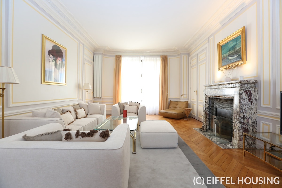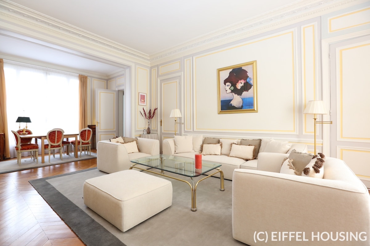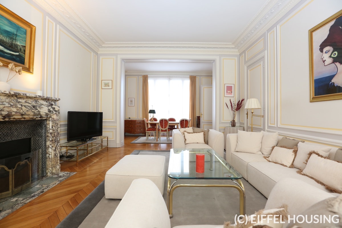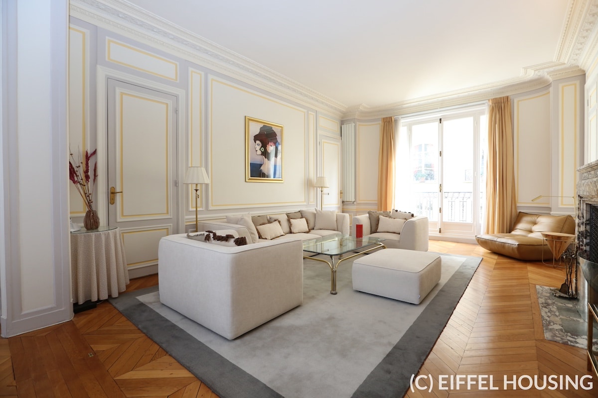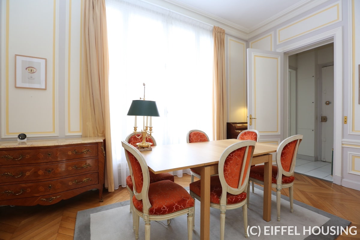 - un très grand séjour/salle à manger en double exposition (qui donne sur le Square du Trocadéro)