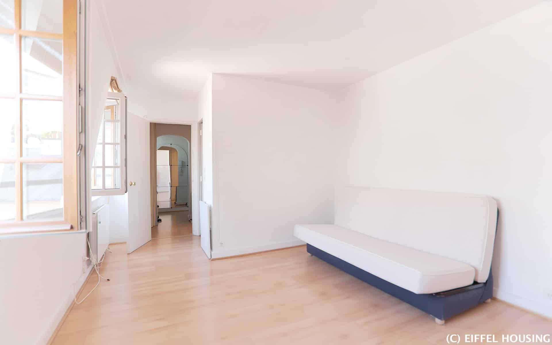 This apartment is in rue de l’Asile Popincourt, in a neighborhood close to “Place de la République” and lively “Oberkampf” area.