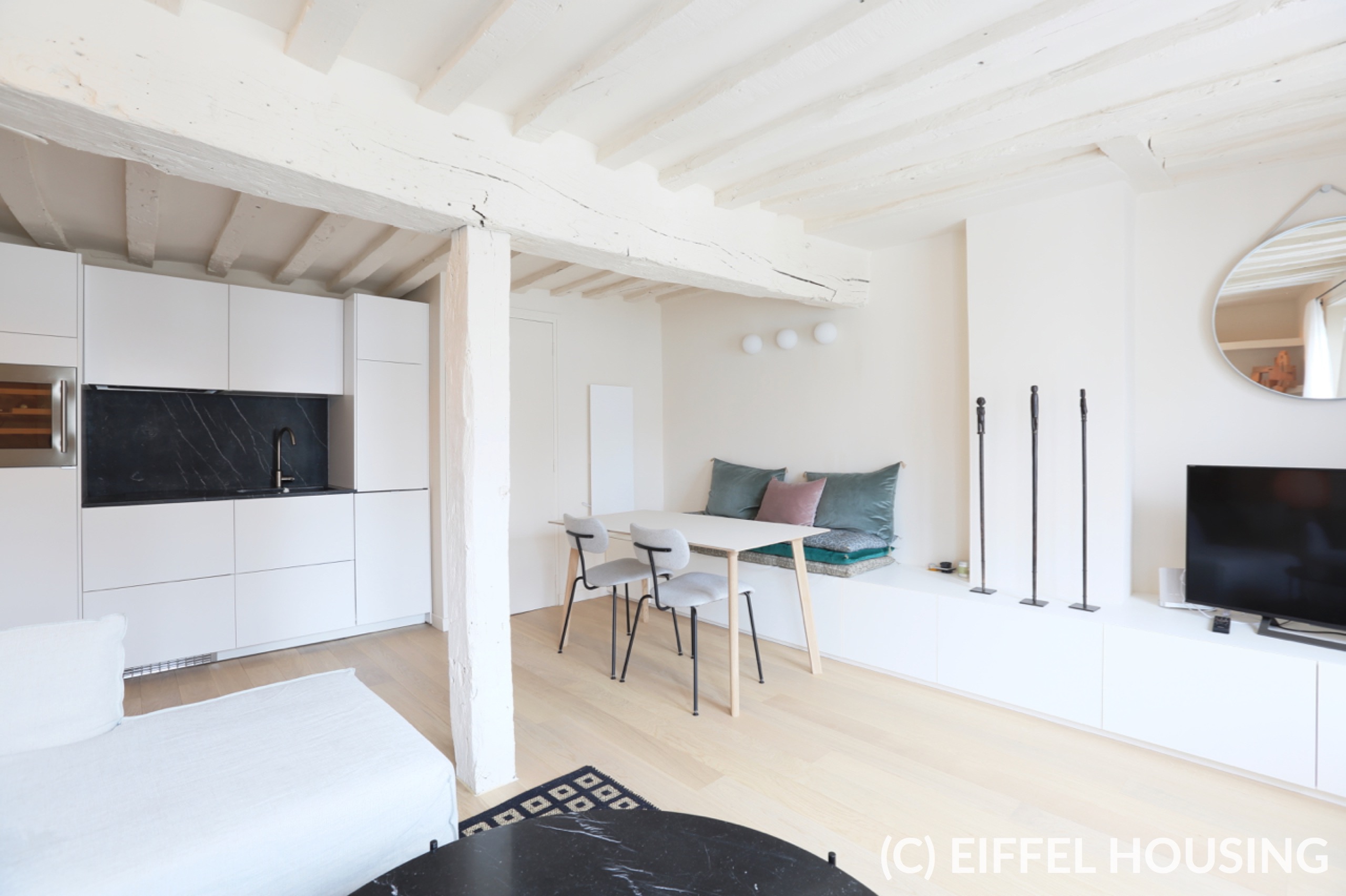 The apartment is located on rue Charlot, in one of the most sought-after neighborhood in Paris. Rue de Bretagne with its open marketplace les Enfants Rouges is a stone’s throw away. Subway stations Filles du Calvaire (line 8), Temple (line 3), République (lines 3,5,8,9,11), St Sébastien Froissard (line 8) et Arts et Métiers (lines 3 et 11) are all within walking distance.