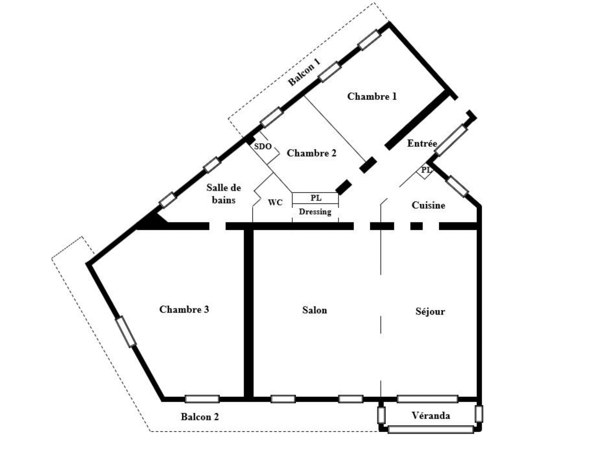 It includes 1 large living room (southern exposure), 1 dining room, 2 bedrooms with their own en-suite bathrooms, 1 separate fully equipped kitchen (all appliances are brand new), 1 WC, 1 dressing room. Both bedrooms are onto a quiet green courtyard.