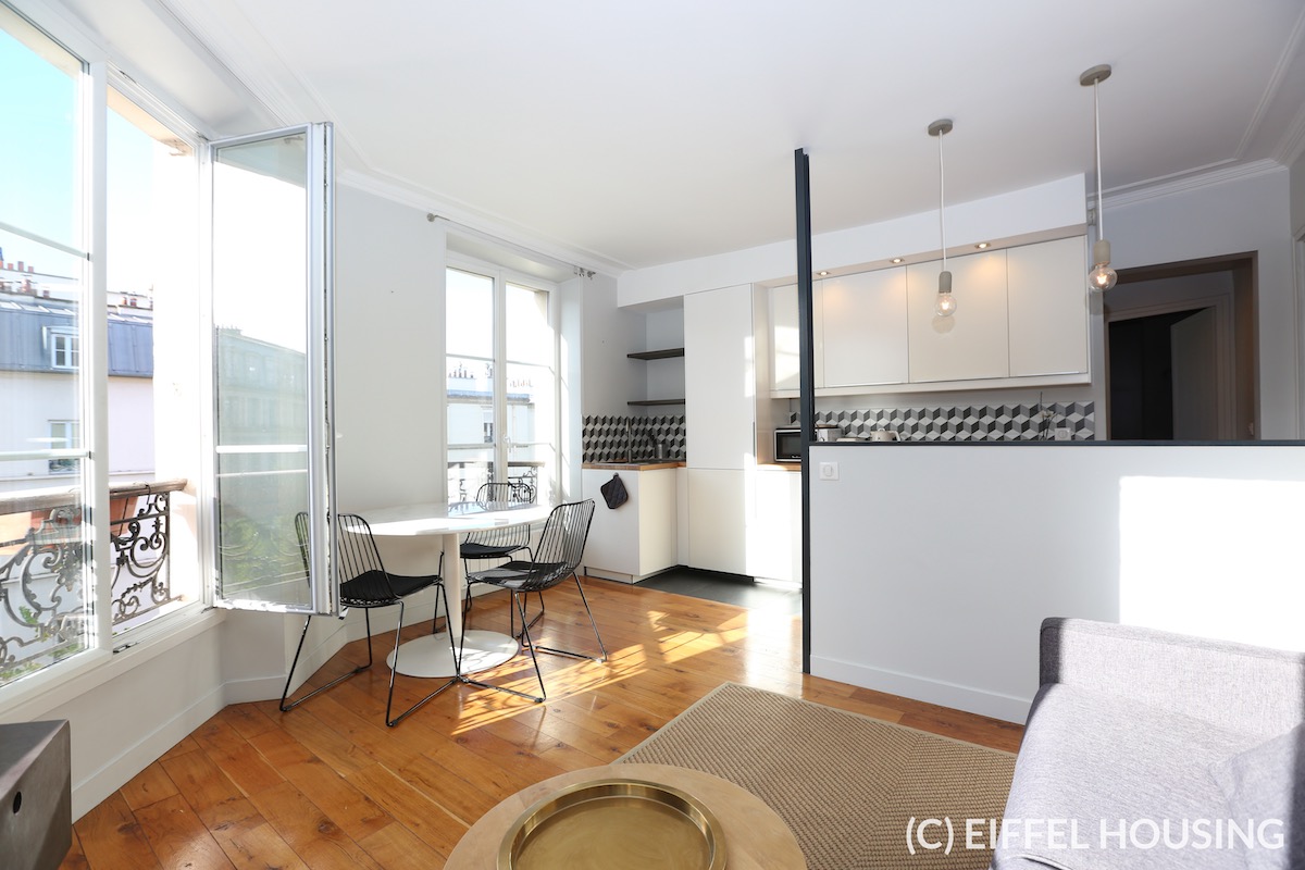 High end furnished apartment located in a private alley close to Rue du Louvre and a stone throw away from Musée du Louvre and Jardin des Tuileries. The apartment is on the top floor (5th floor with elevator); enjoys an unobstructed view, full of light and is very quiet despite being in the heart of Paris. The apartment has benefited from a recent renovation.
