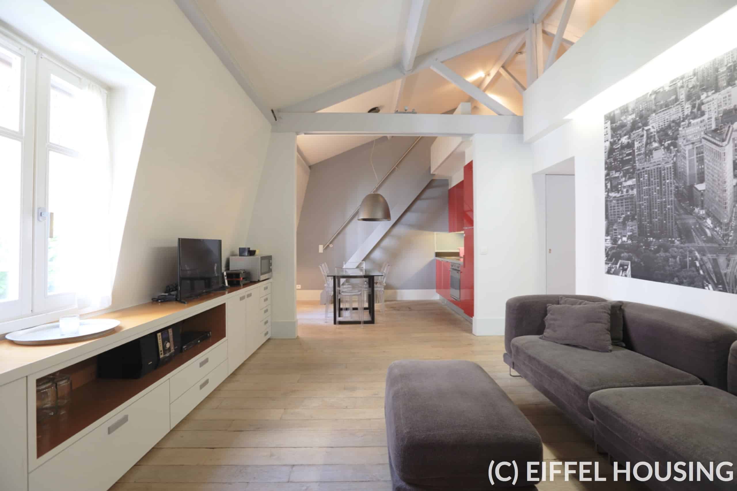 It includes 1 living room, 2 large bedrooms (with one of them with an exposure on courtyard), 1 semi-equipped kitchen, 1 bathroom (with bathtub and WC).