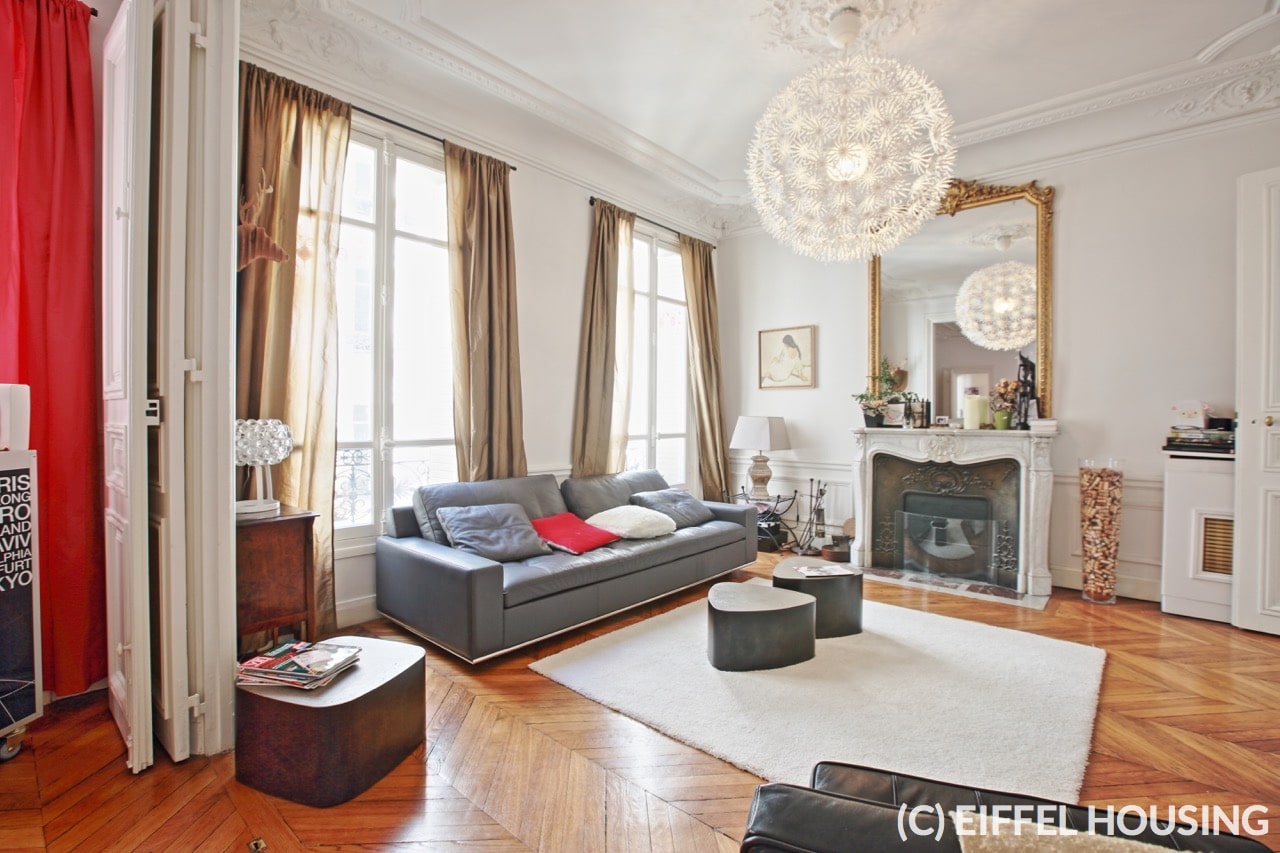 The apartment was entirely renovated in 2015. It includes 1 double living room, 3 large bedrooms, 1 fully equipped kitchen, 1 bathroom (with shower and bathtub), 2 WC (1 separate), 1 laundry room. High storage capacity. High ceiling, hardwood floor.
