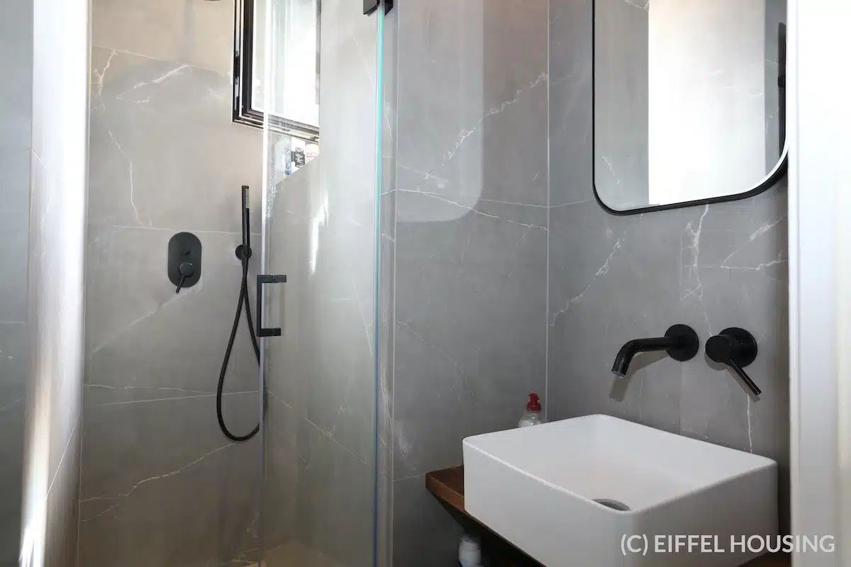 On the 5th floor (with elevator) and with a square footage of 101 sqm, the apartment includes an entrance hall, a double living room / dining room (with bow window – full of light – western exposure), a separate and fully equipped kitchen, a master bedroom, two additional bedrooms (rooms en enfilade – furnishing can be adjusted according to tenants’ needs), a bathroom (with bath tub), a shower-room with WC.