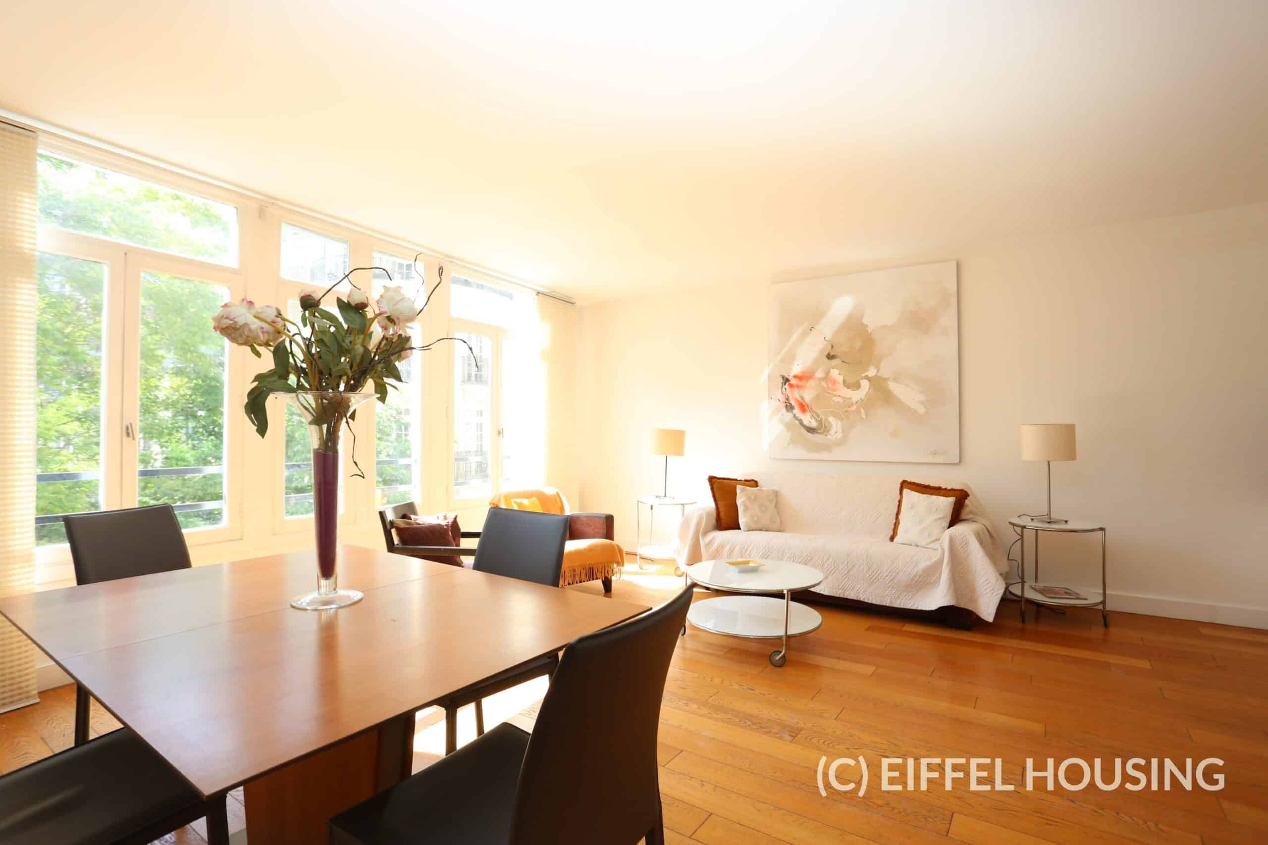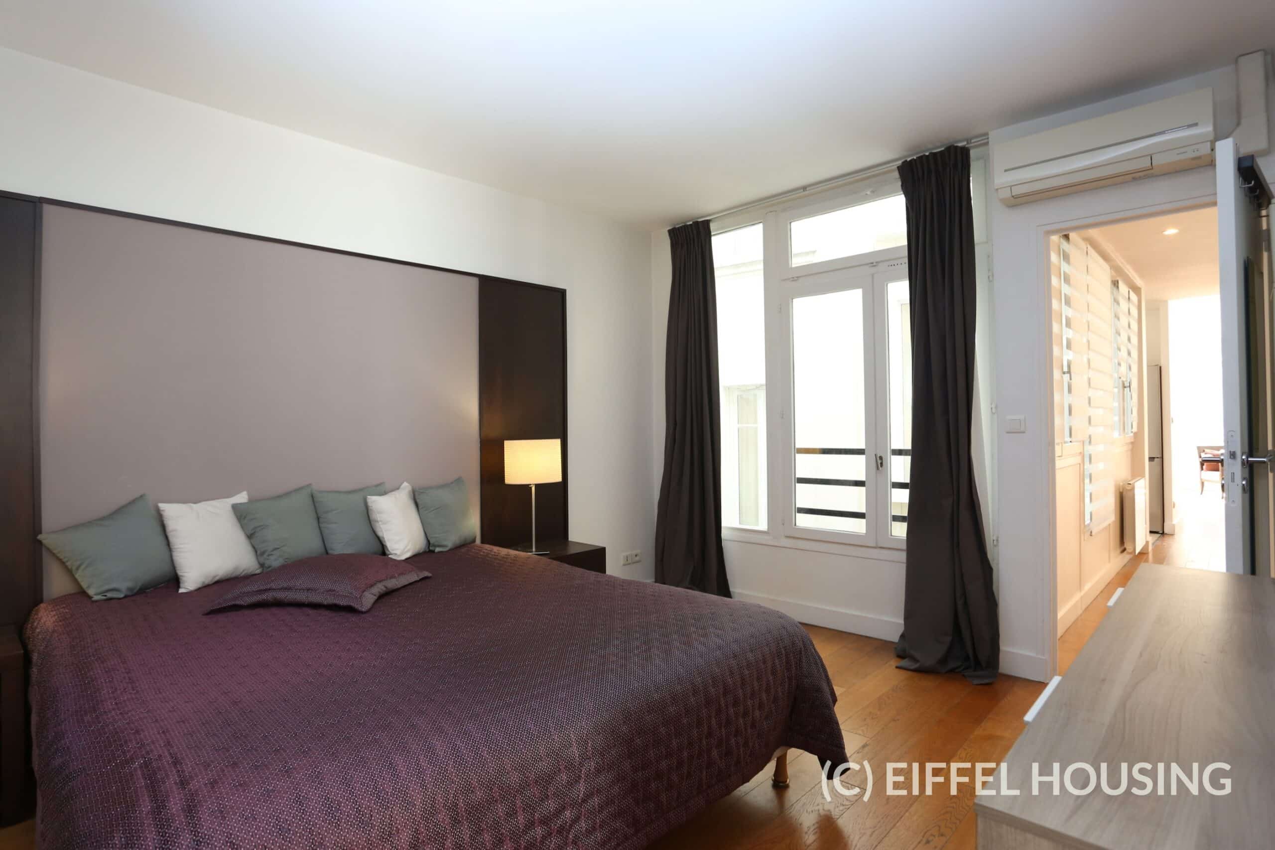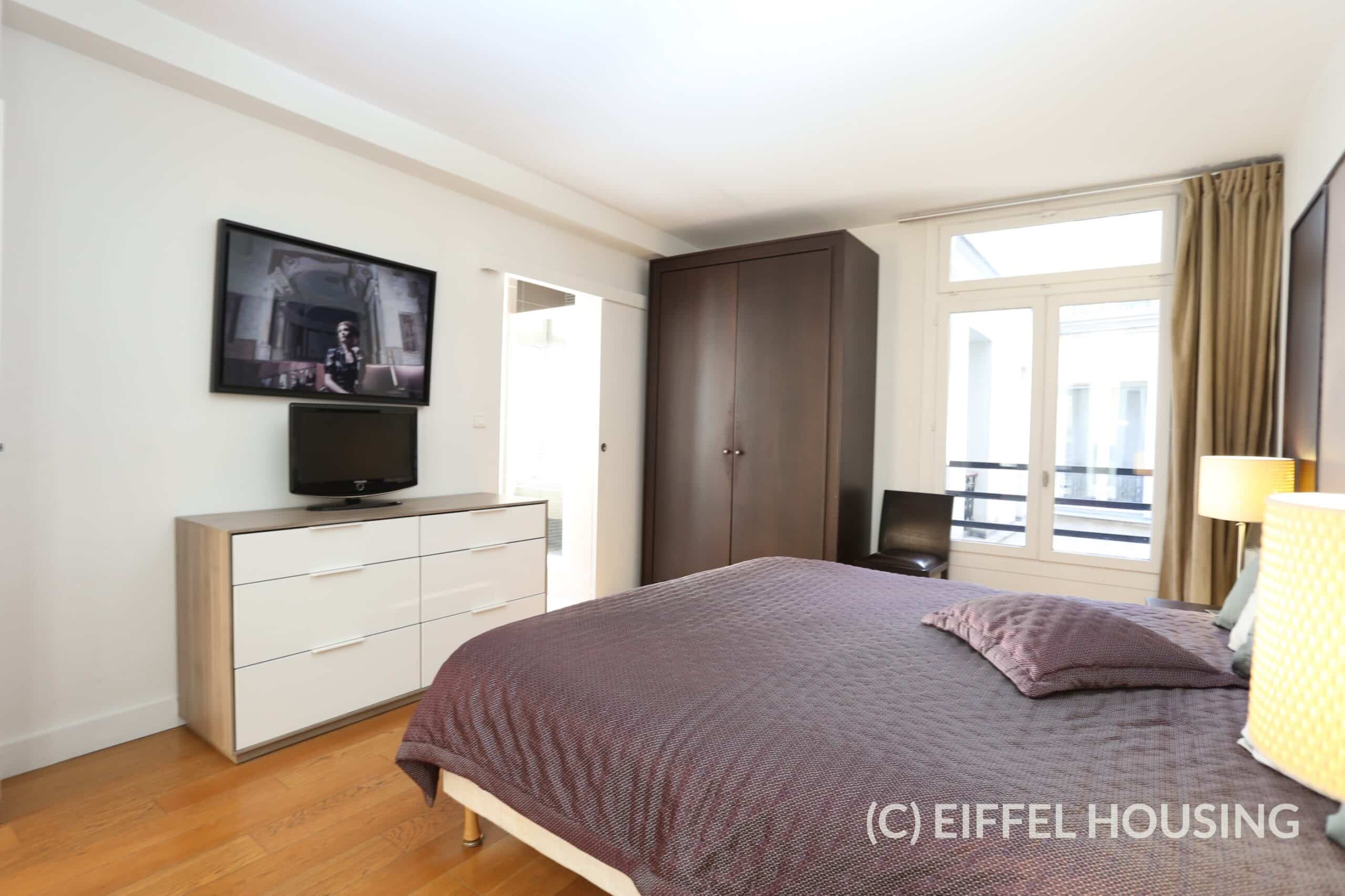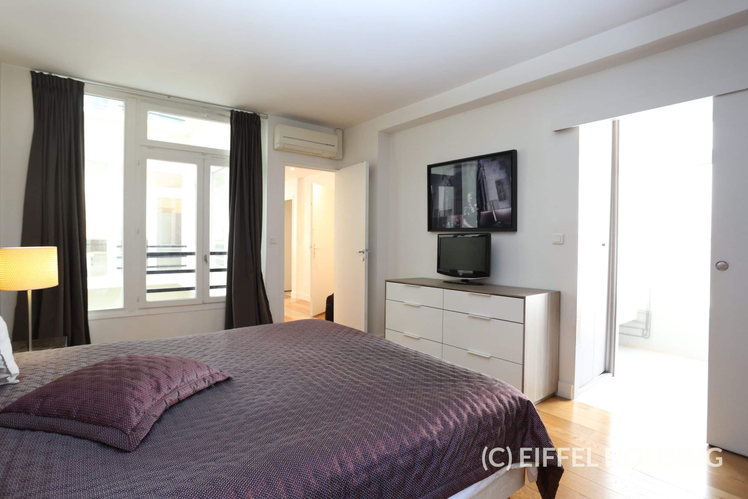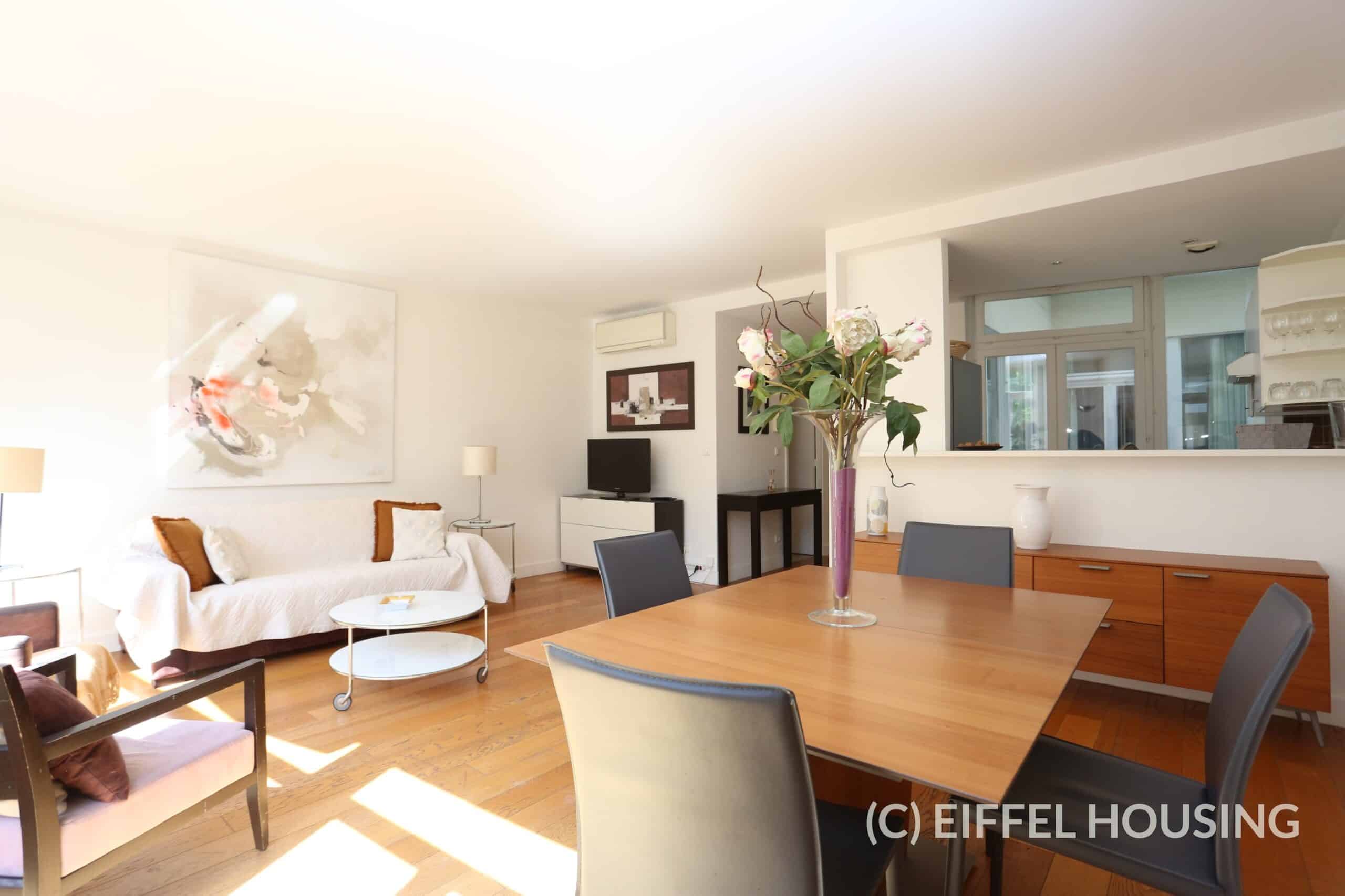 Located on the 4th floor with lift (the lift arrives immediately in the flat), in a secure building with digicode and intercom, this luxury furnished flat is air-conditioned and very bright.