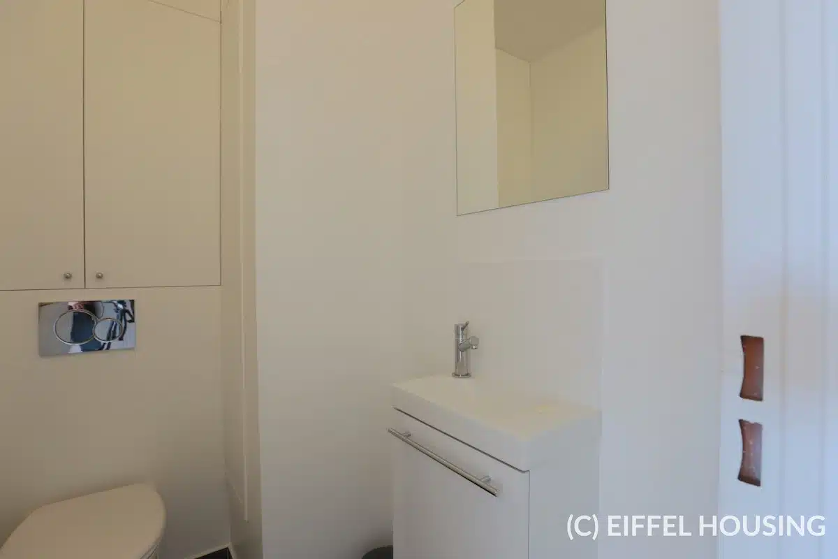 This 68 sqm property includes 1 large living room (very quiet) with its fully fitted kitchen separated from the living room by a glass panel , 2 bedrooms (each with a double bed), 1 bathroom (with bath tub), 1 separate toilet.