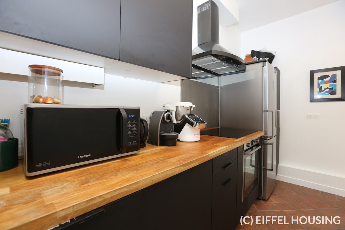 The apartment is in excellent condition. Contemporary and refined furniture and decoration. Very quiet : the apartment overlooks a large and quiet courtyard.