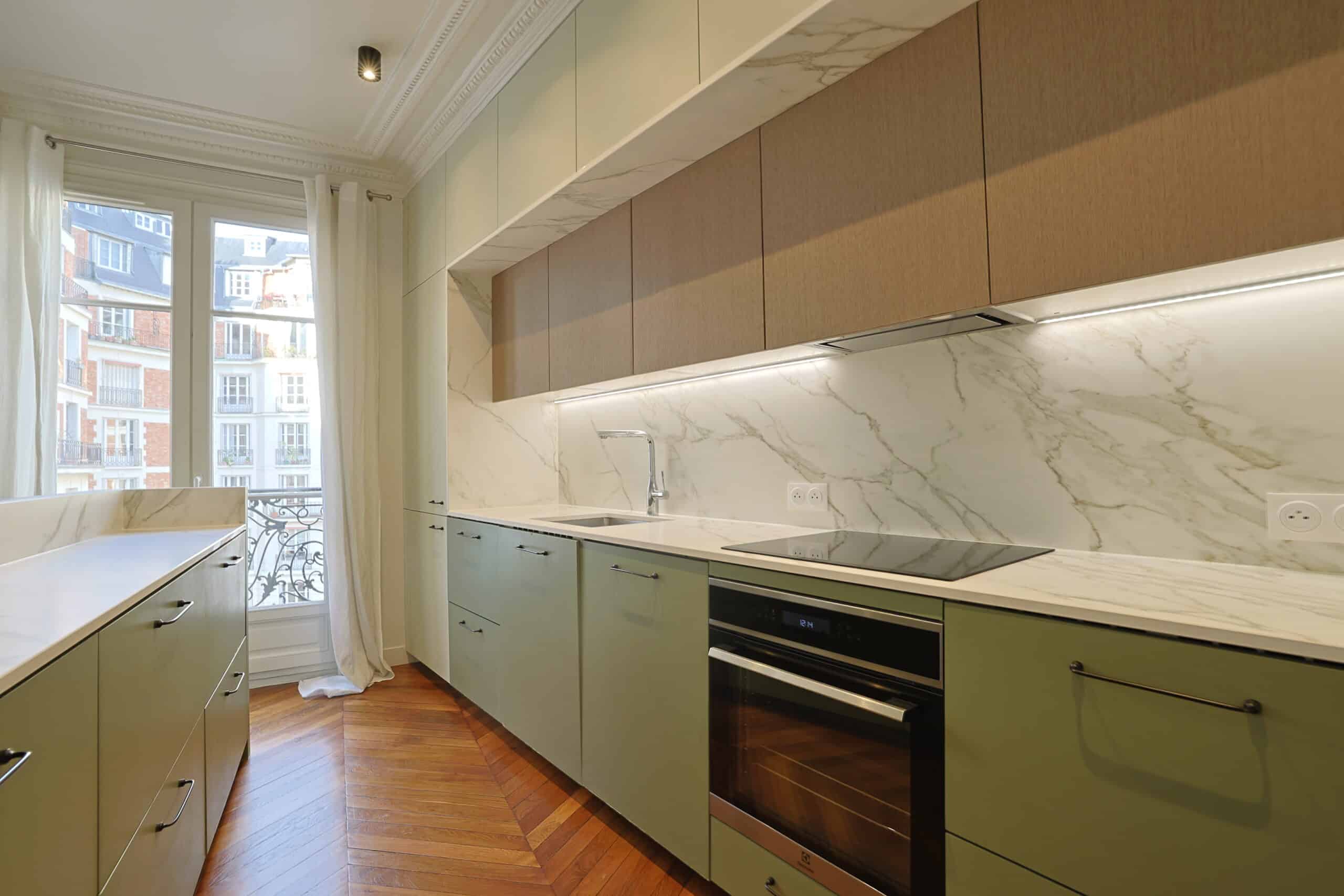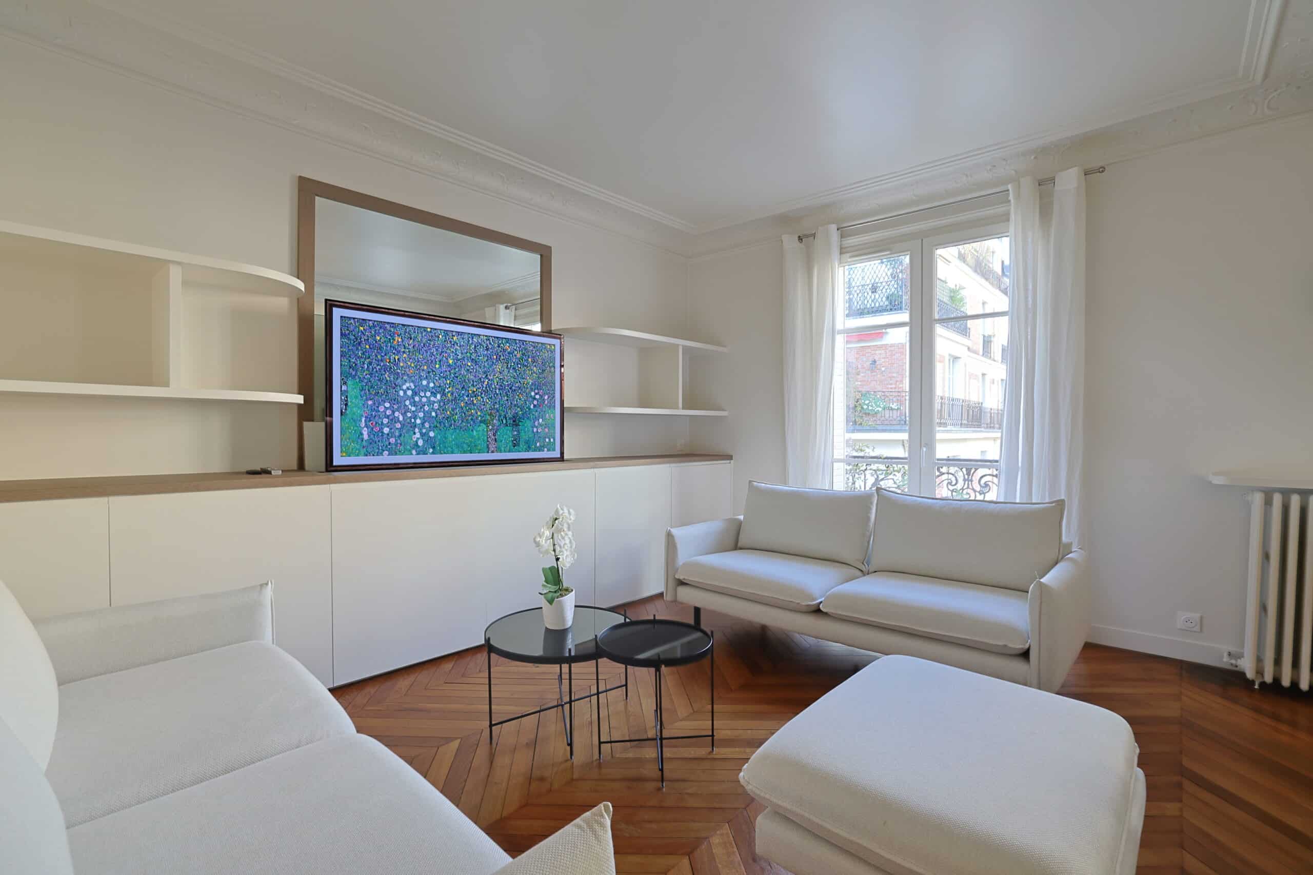 Beautiful apartment fully renovated, furnished, and equipped by an architect, located on Rue des Marronniers, near Rue de Passy, La Muette metro station (line 9), and Boulainvilliers RER station (line C).