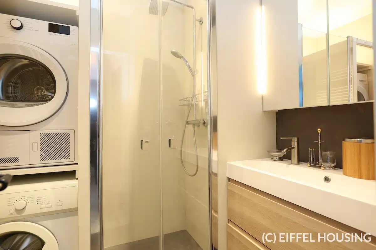 With its 31 sqm the apartment includes an entrance hall, a very bright and quiet living room with its open plan fully-fitted kitchen, an access to a balcony with unobstructed view, a bedroom, a shower room (with washing machine and dryer), a separate toilet.
