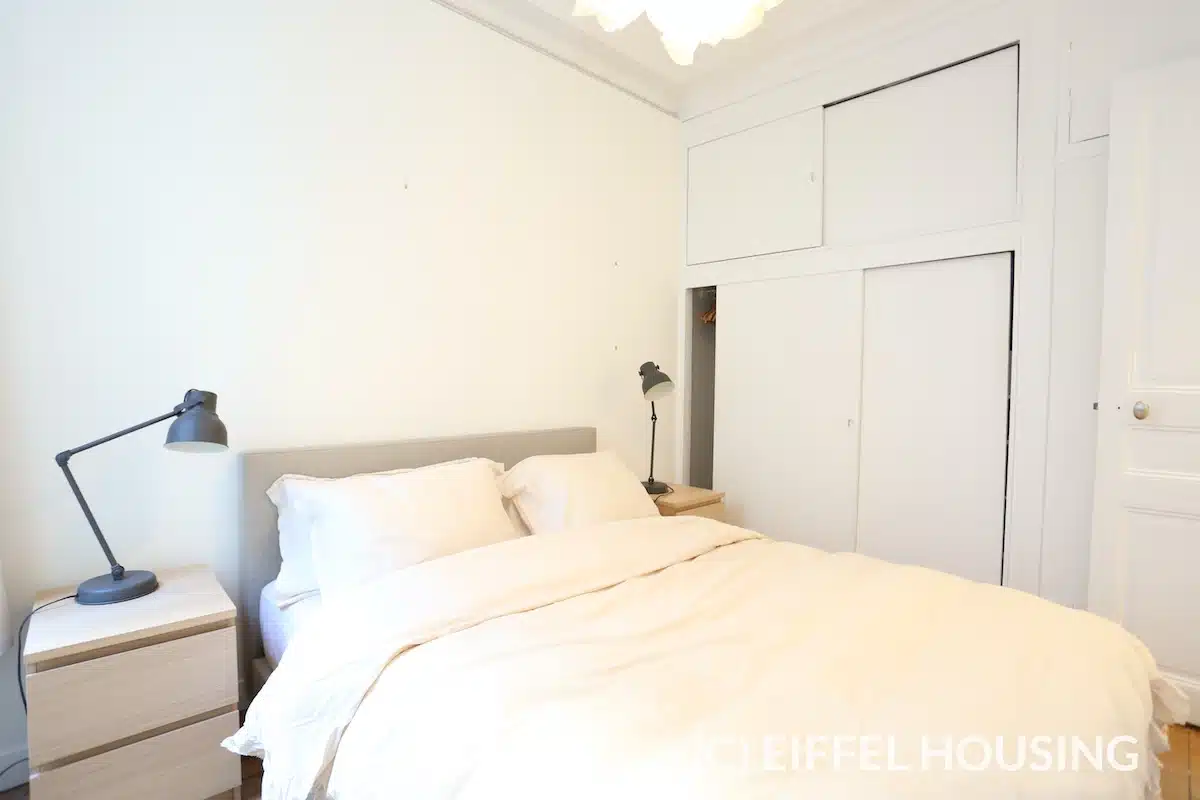 Rue Eugène Manuel, a stone’s throw from the rue de Passy and all its shops, a magnificent 120m2 flat tastefully furnished, on the 1st floor with lift of a luxury Haussmann building.
