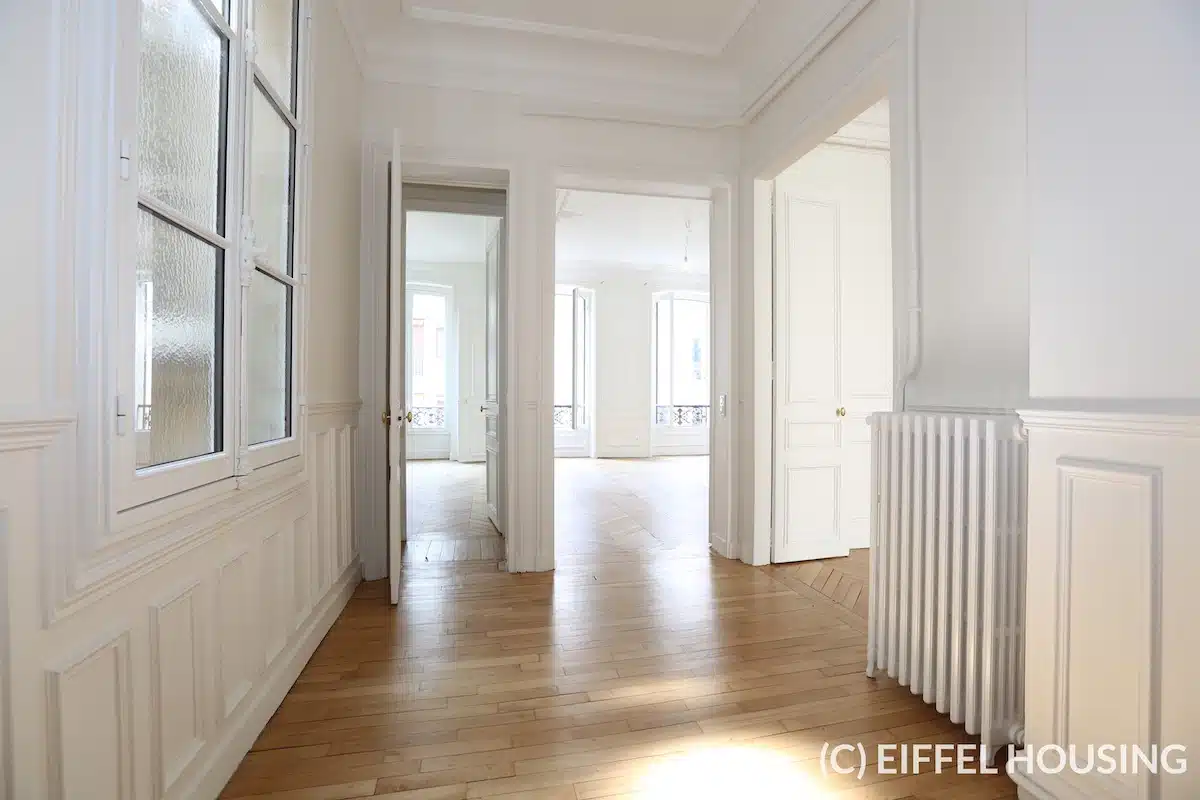 Breath-taking newly renovated 4BR unfurnished apartment located on rue Galilée in the 16th arrondissement, close to Avenue Marceau and Champs-Elysées. Subway stations Kléber (line 6) and George V (line 1) are close-by.