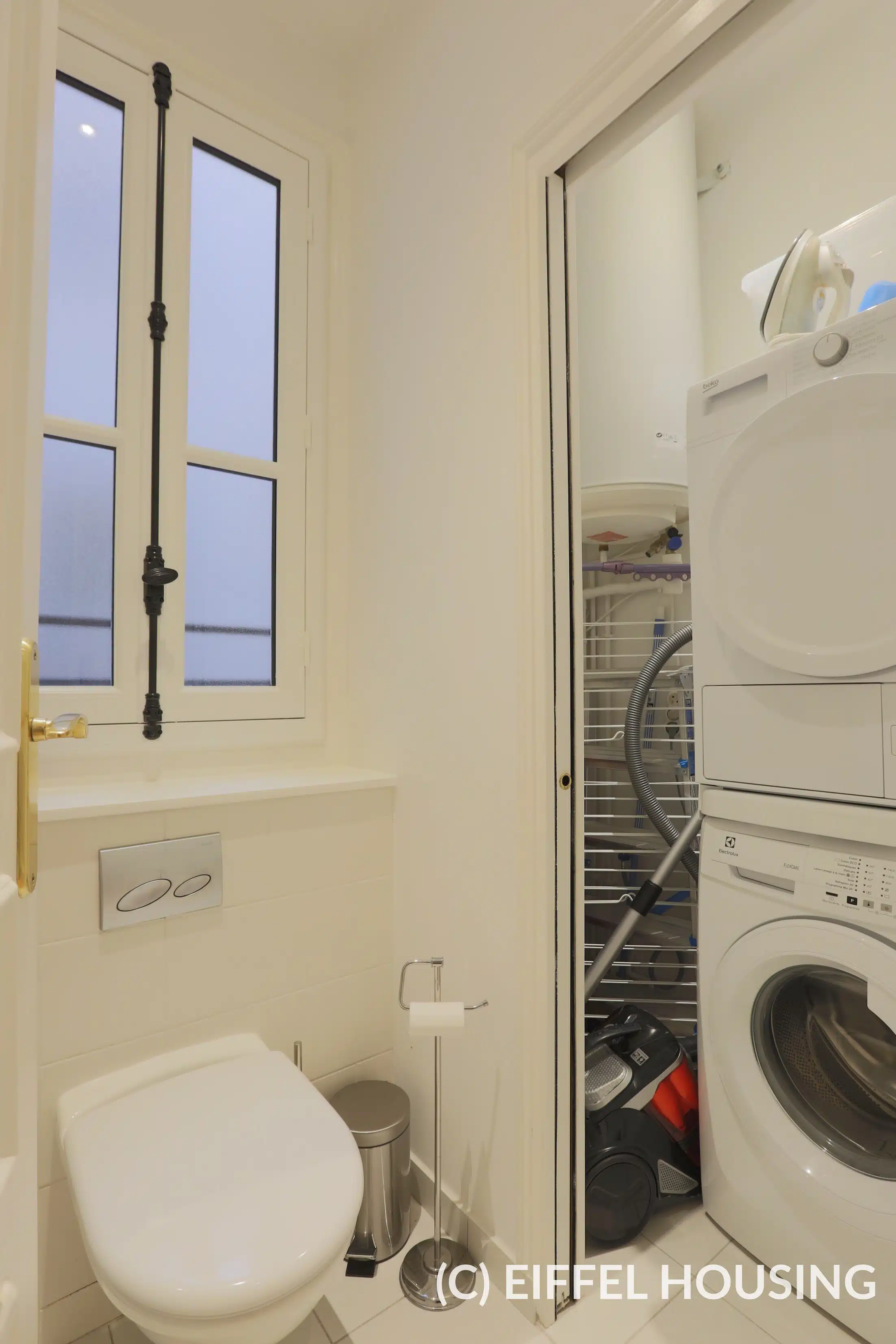 This 53 sqm property features : 1 living room, a fully-fitted kitchen (all appliances are new, includes washing machine and dryer), 1 bedroom, a bathroom with bath tub, 1 separate WC.