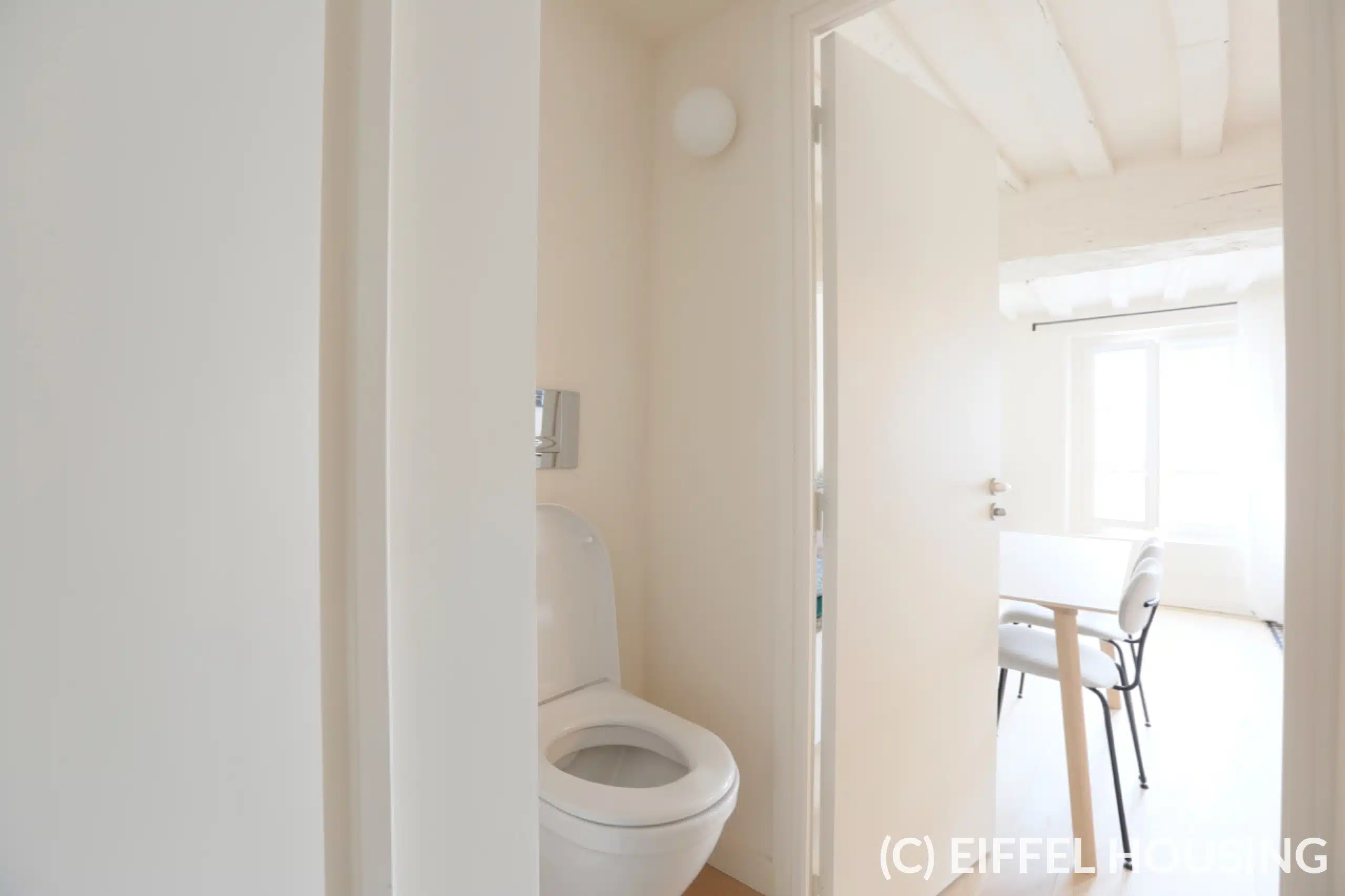 The apartment includes 1 large living room with a fully equipped (including a wine cellar) open plan kitchen, 1 bedroom (with large storage capacity) with its walk-in bathroom and 1 separate WC.