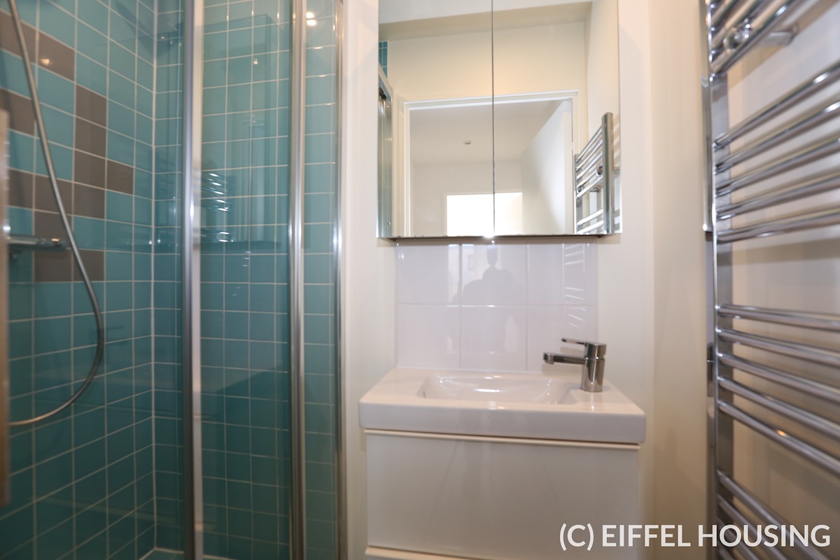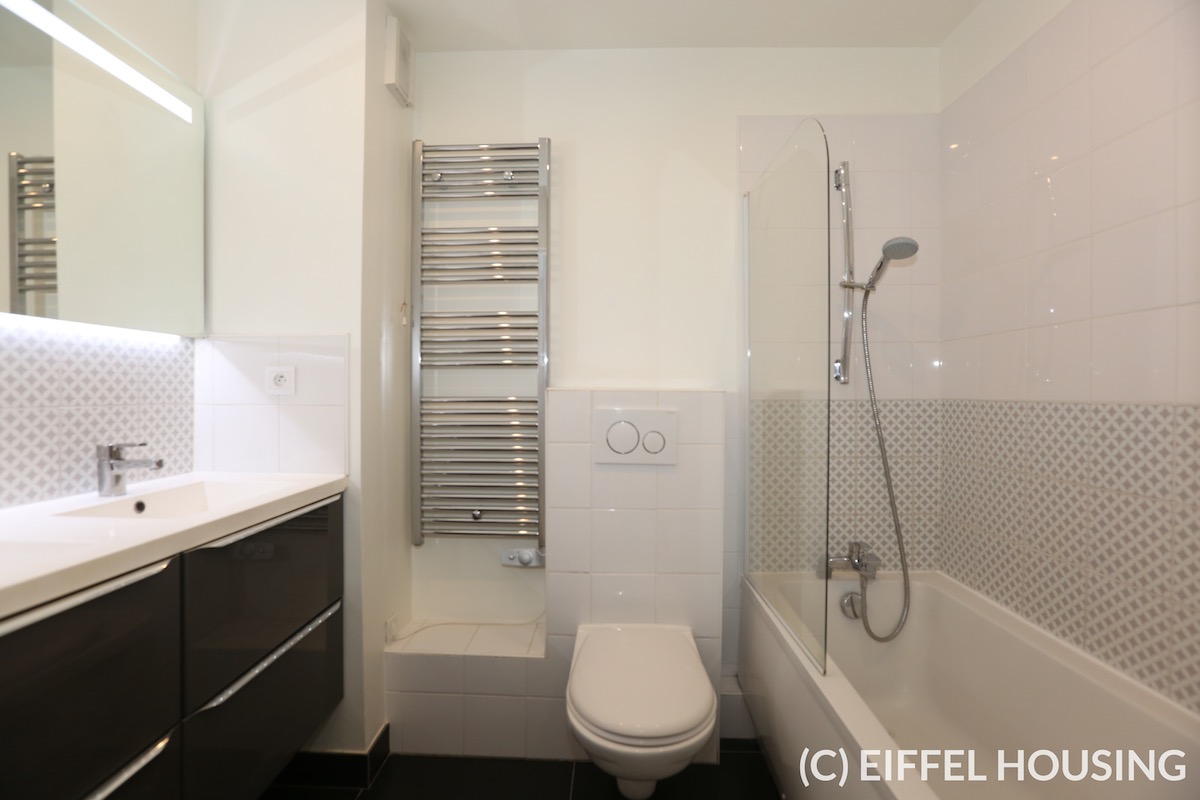 This 90sqm unit features an entrance hall, a bright living room with its open plan fully equipped kitchen, 3 bedrooms with closets, a bathroom with bathtub and toilet, a shower room and a separate toilet.