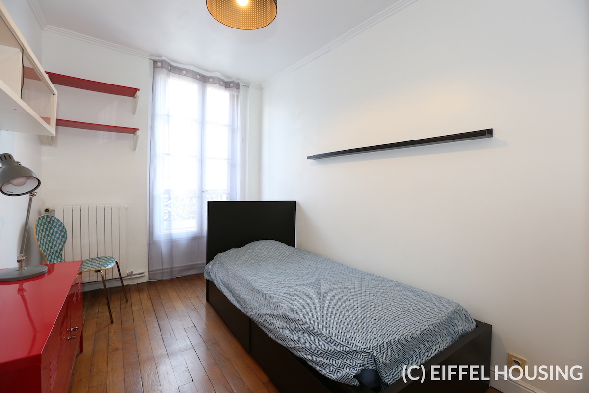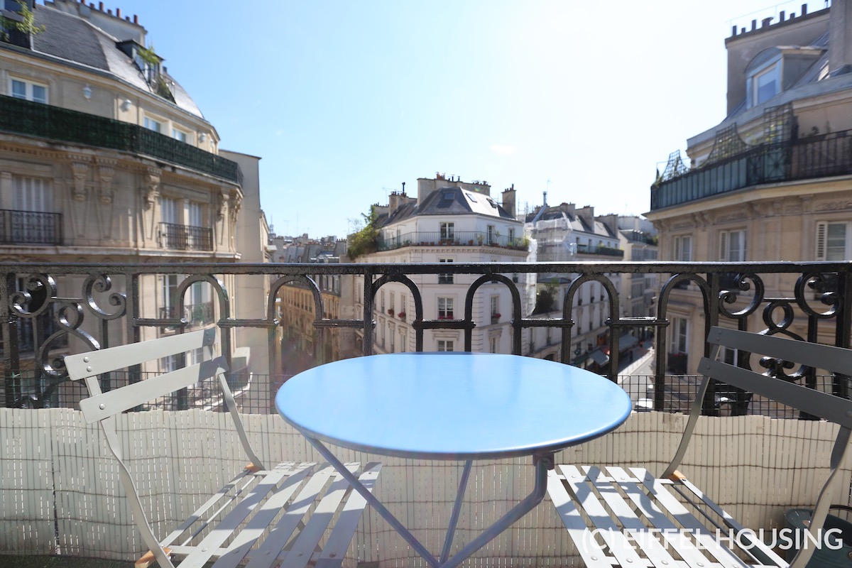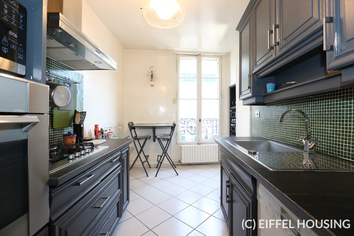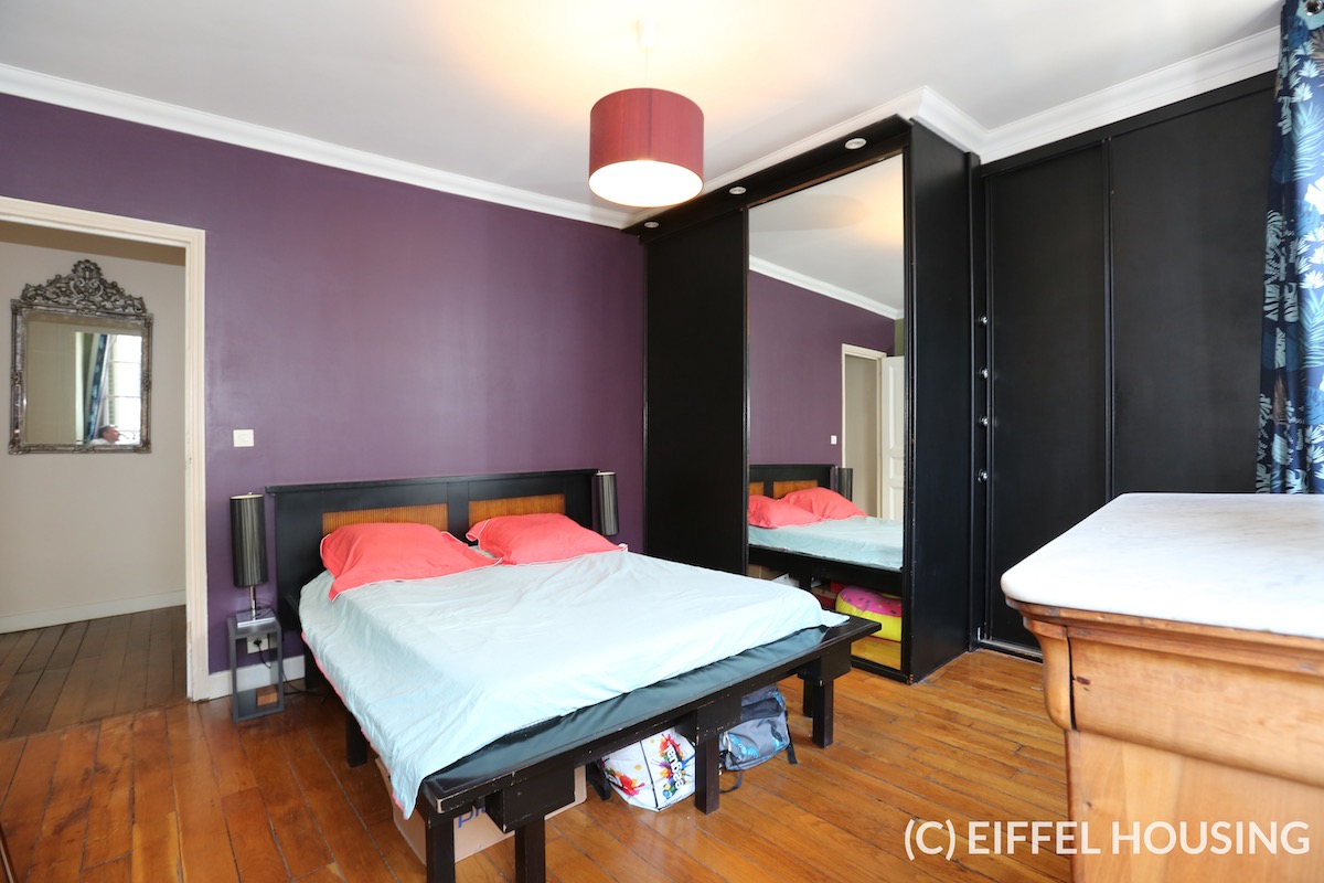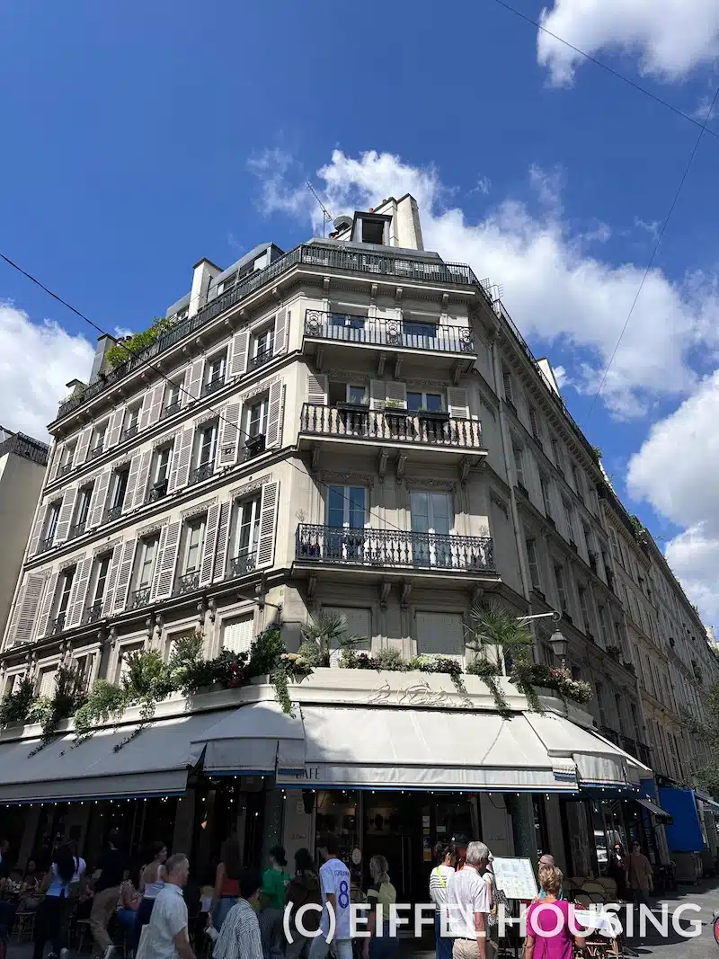 - a large sunbathed living room (eastern exposure with stunning view onto rue Rambuteau)